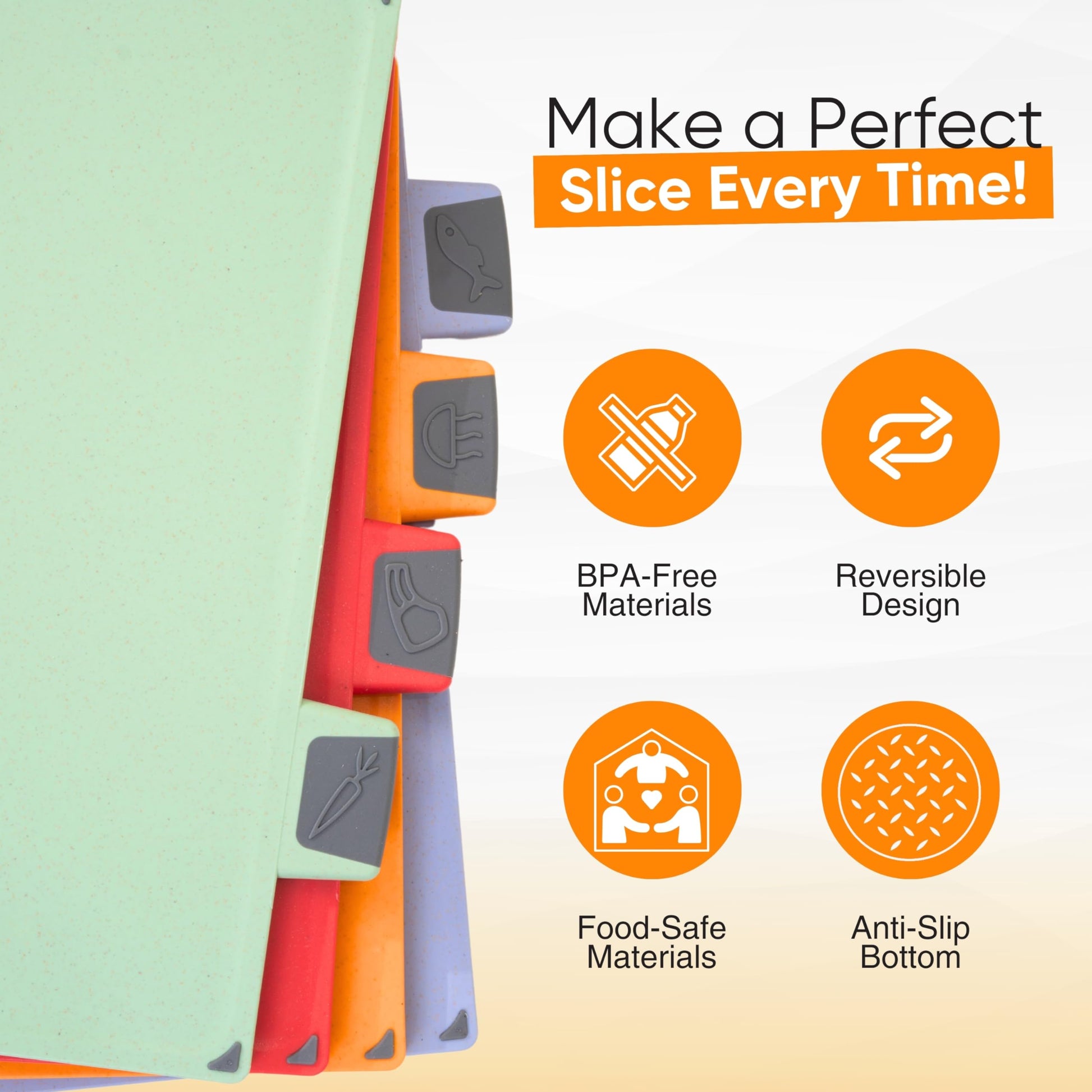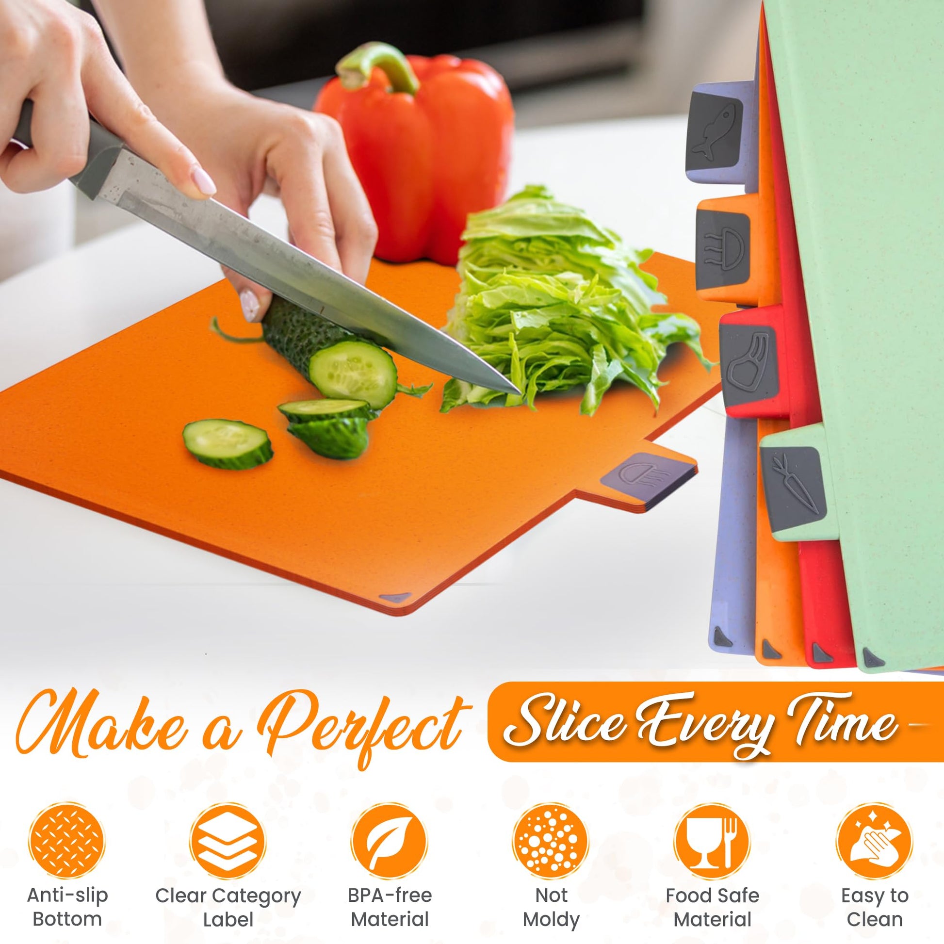 • Non-Toxic & BPA-Free Materials: Designed with safety in mind, these non-toxic cutting boards for kitchen are made of BPA-free plastic, making them ideal for preparing meals kitchen utensils set.