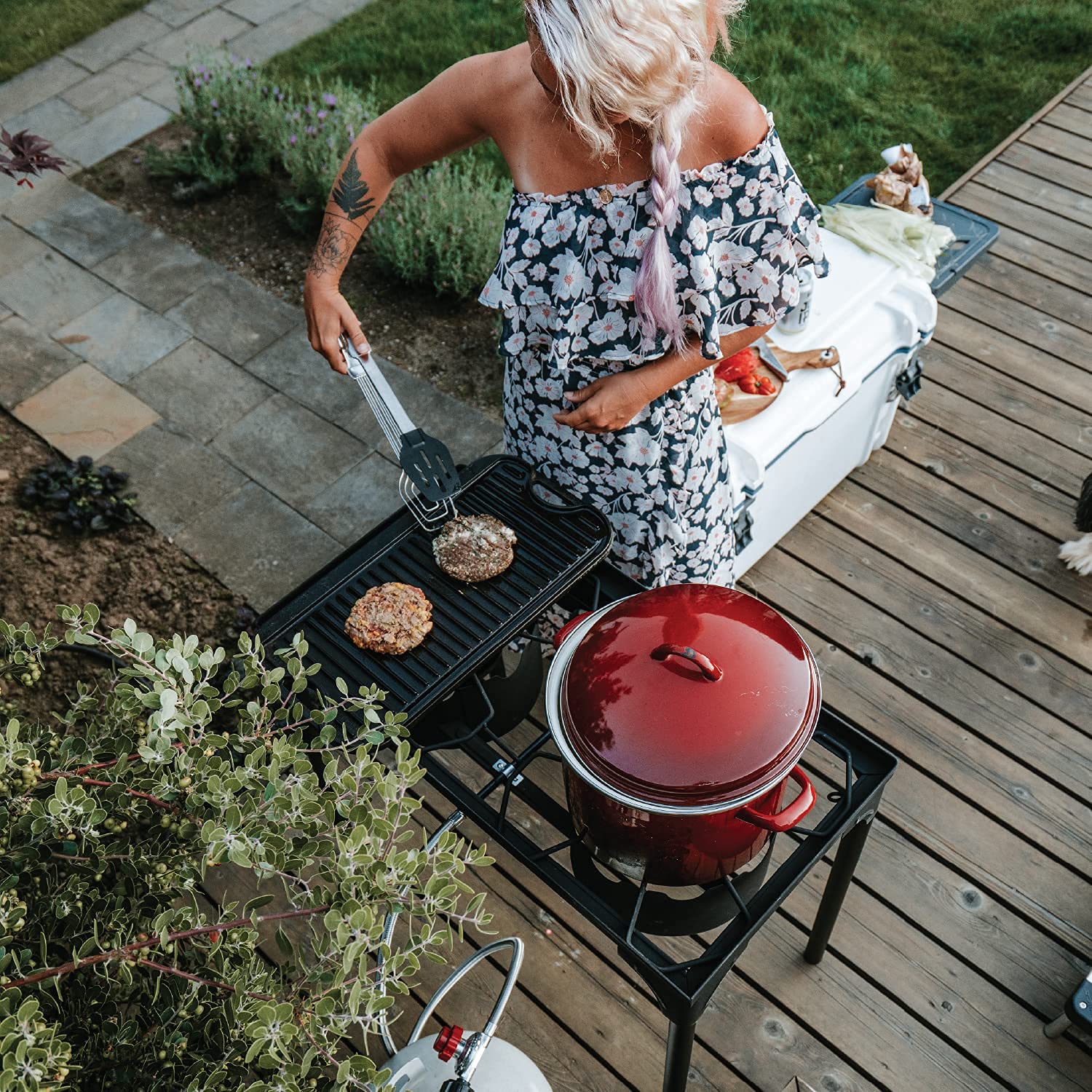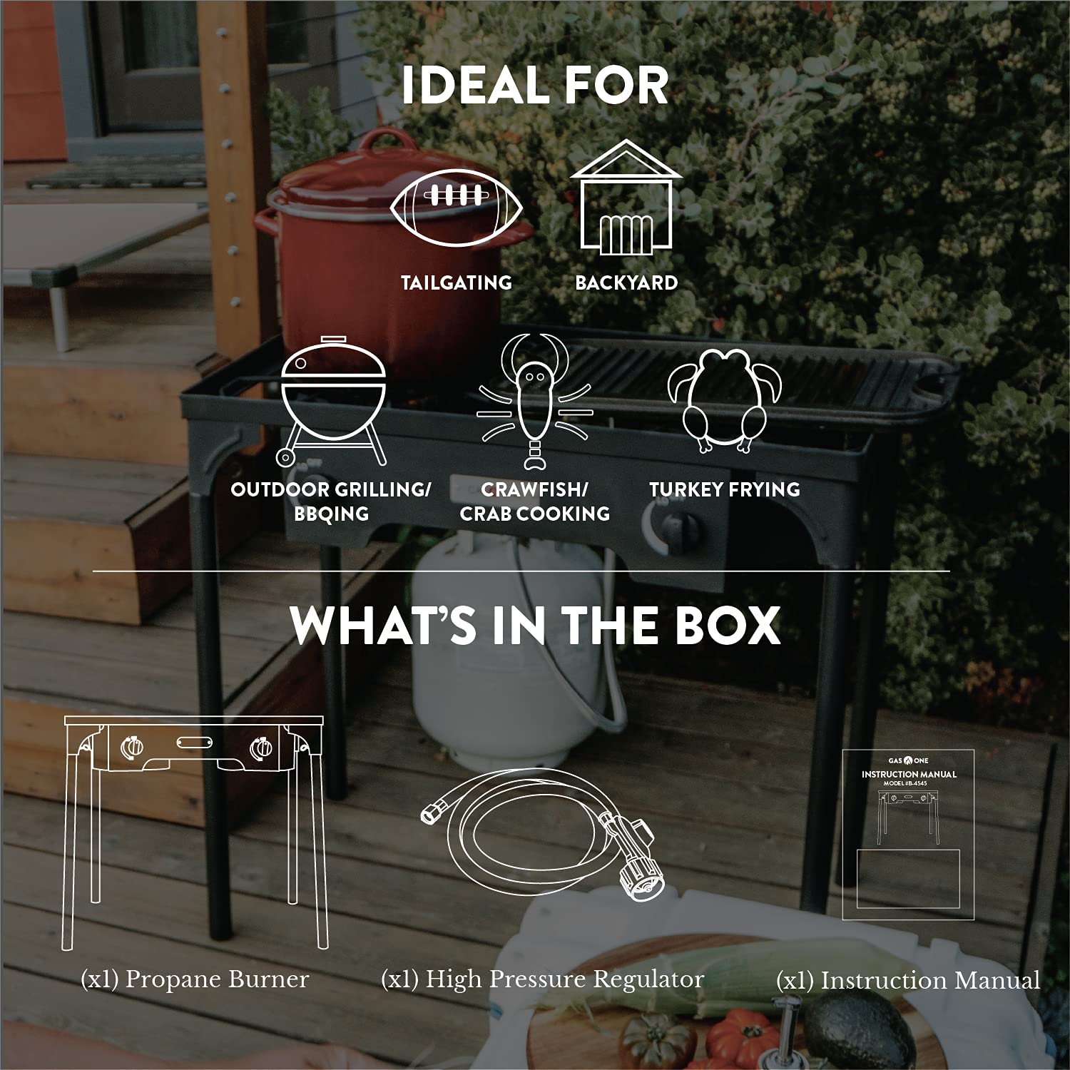 • PROPANE DOUBLE BURNER FOR OUTDOOR COOKING - Equipped with two burner heads, Gas One’s Double Burner provides extreme heat for various different cooking scenarios. From tailgating to catering, this burner stands out for those looking for a little more range in their heat