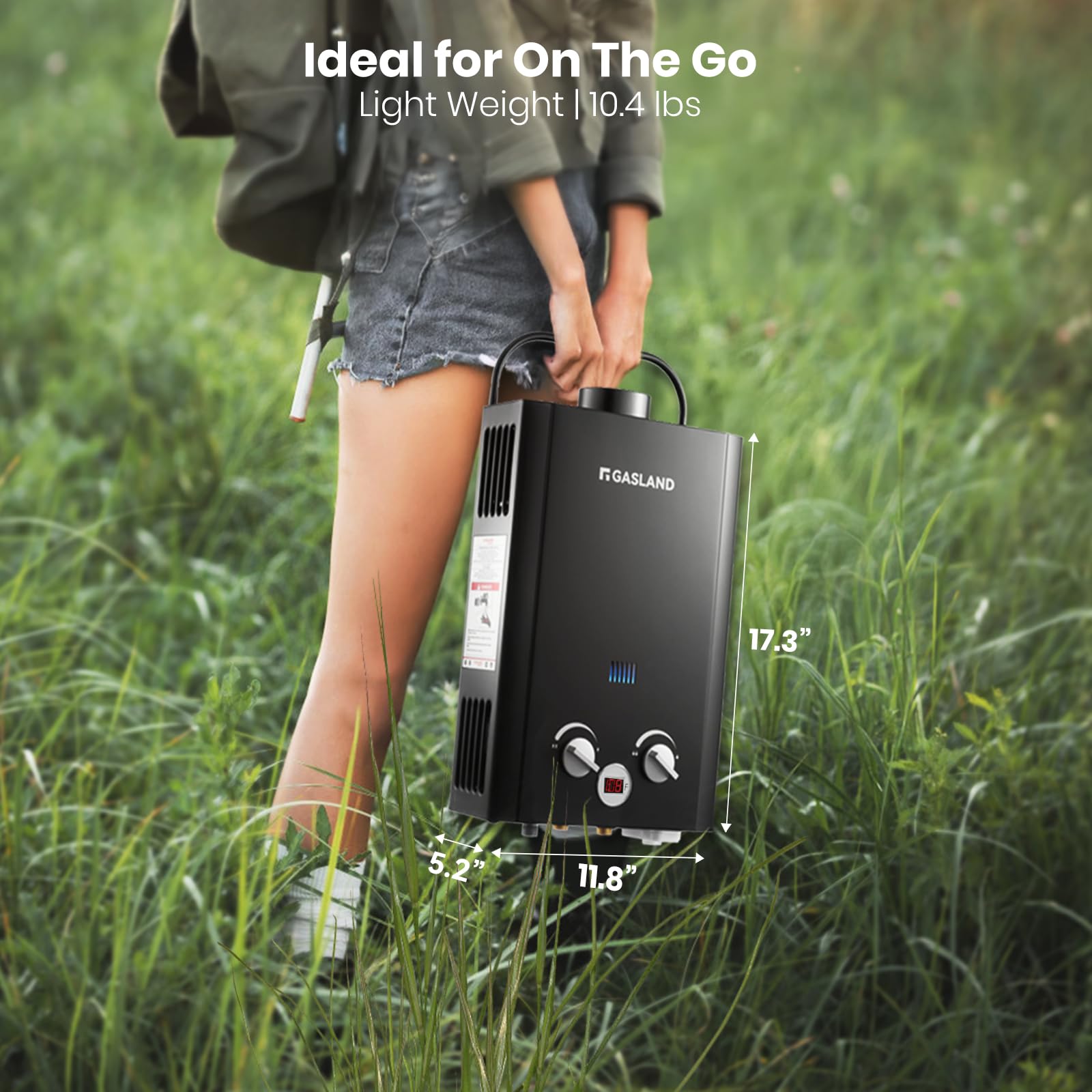 GASLAND Outdoors BE158B 1.58GPM 6L Portable Gas Water Heater, Instant Propane Heater, Overheating Protection, Easy to Install, Use for RV, Cabin, Barn, Camping, Boat, Black