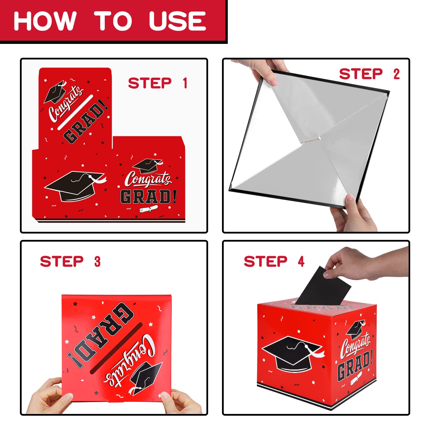 Gatherfun Graduation Decorations 2025 Grad Card Box for Gift Graduation Party Favors Decor Party Supplies Red