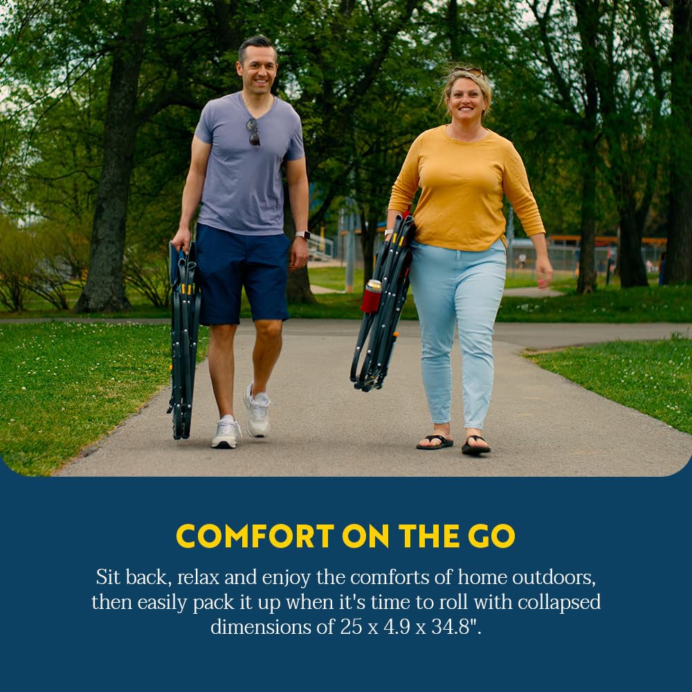 • SIMPLE SET UP. Recharge in no time with Eazy-Fold Technology. Simply grab the seat frame, push out, then down and you're good to go. Packing up is just as quick — place your foot on the leg's base and pull the closure handles up.