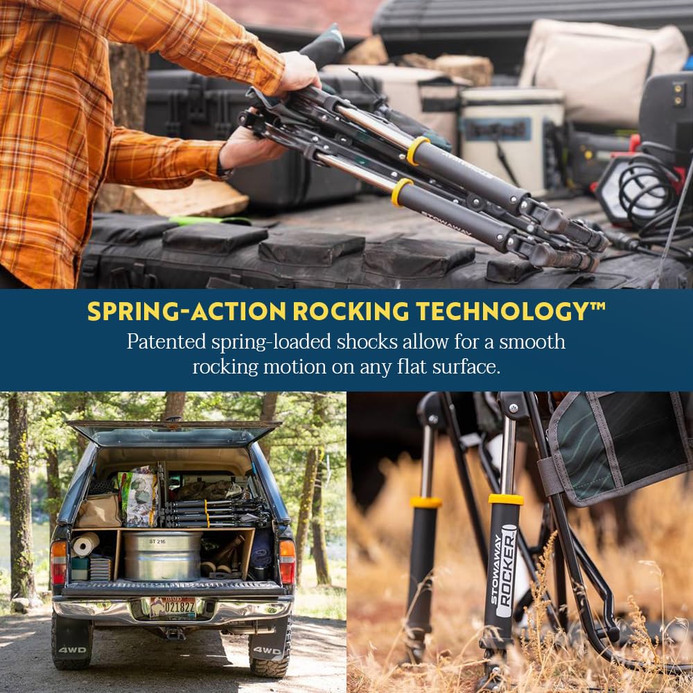 • OUTDOOR LIVING. Great for relaxing by the campfire or sideline, the Stowaway Rocker from GCI Outdoor is an adult rocking chair that's easy to carry and set up. Relax in comfort on your adventure with smooth rocking on any surface, anywhere.