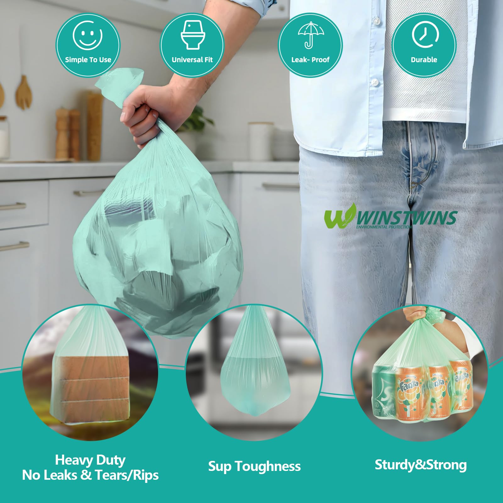 • 【STURDY&DURABLE&FLEXIBLE】The 4 gallon trash bags are extramly sturdy and elastic,even though you put anything heavy inside,our bathroom garbage bags stay stable!Plus,garbage bags 4 gallon stay well on the trashcan without sliding inward.And since the flexibility you can stretch the small trash bags bathroom to fit the rectangular bin with a wide mouth!Our small bathroom trash bags are thick and do not tear/break/puncture/rip,even small kitchen waste can maintain a sturdy shape!