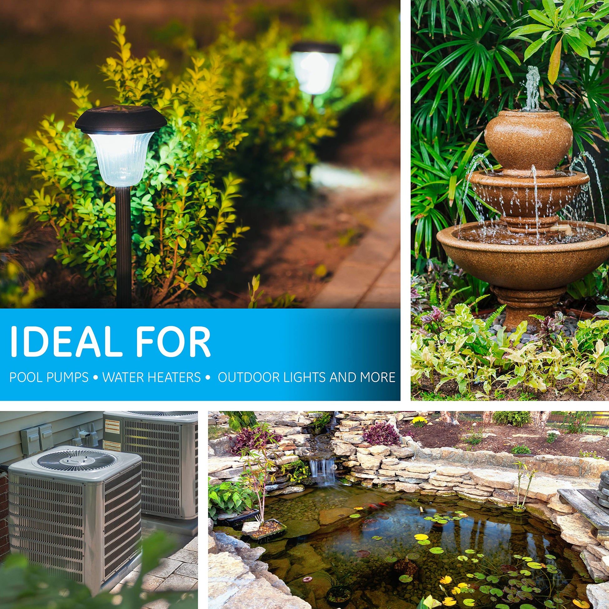 • Versatile switch – The single-pole single-throw switch supports a variety of setups to power fans, pumps, pool heaters, AC units, heating and ventilation systems, and more
