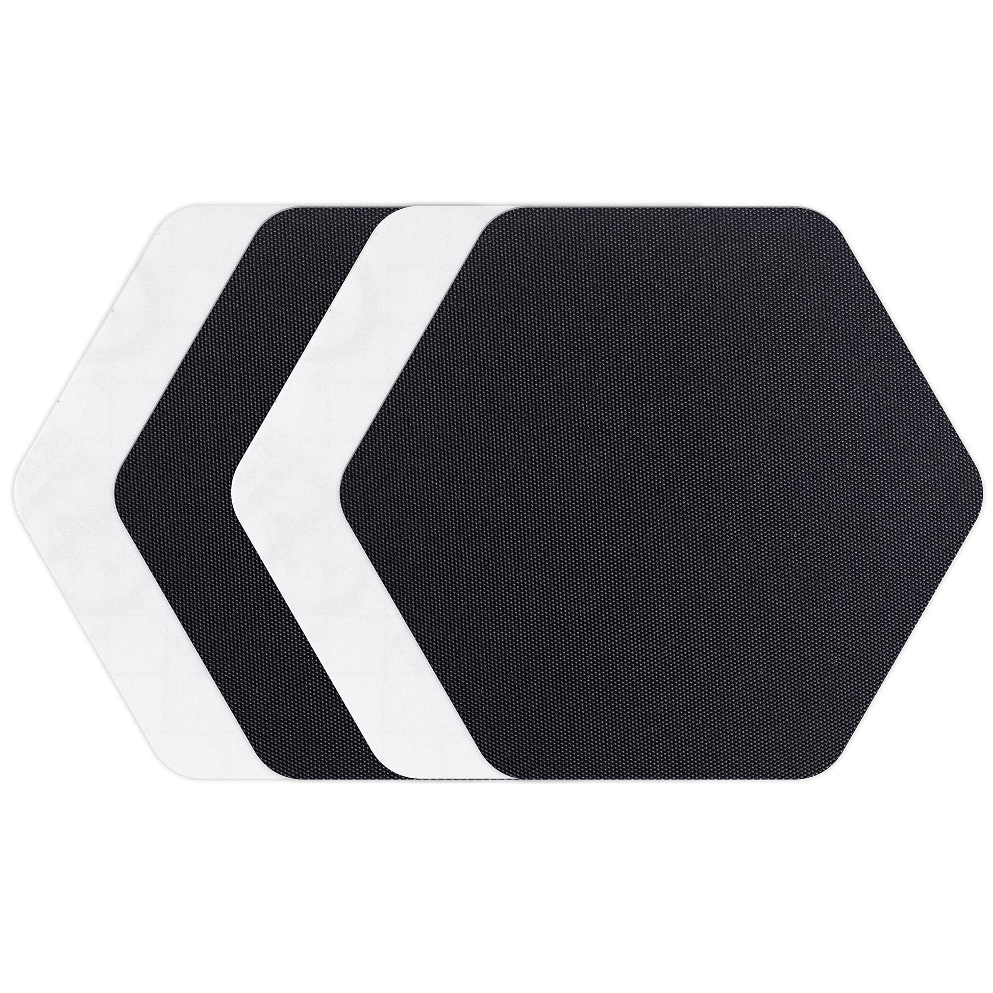 GEAR AID Tenacious Tape Hex 2.5” Shapes, Nylon Outdoor Fabric, Vinyl Repair Patches, Peel-and-Stick to Fix Holes and Burns in Down Jackets, Rain Gear, Tents, Tarps and More, Black and Clear, 4 Patches