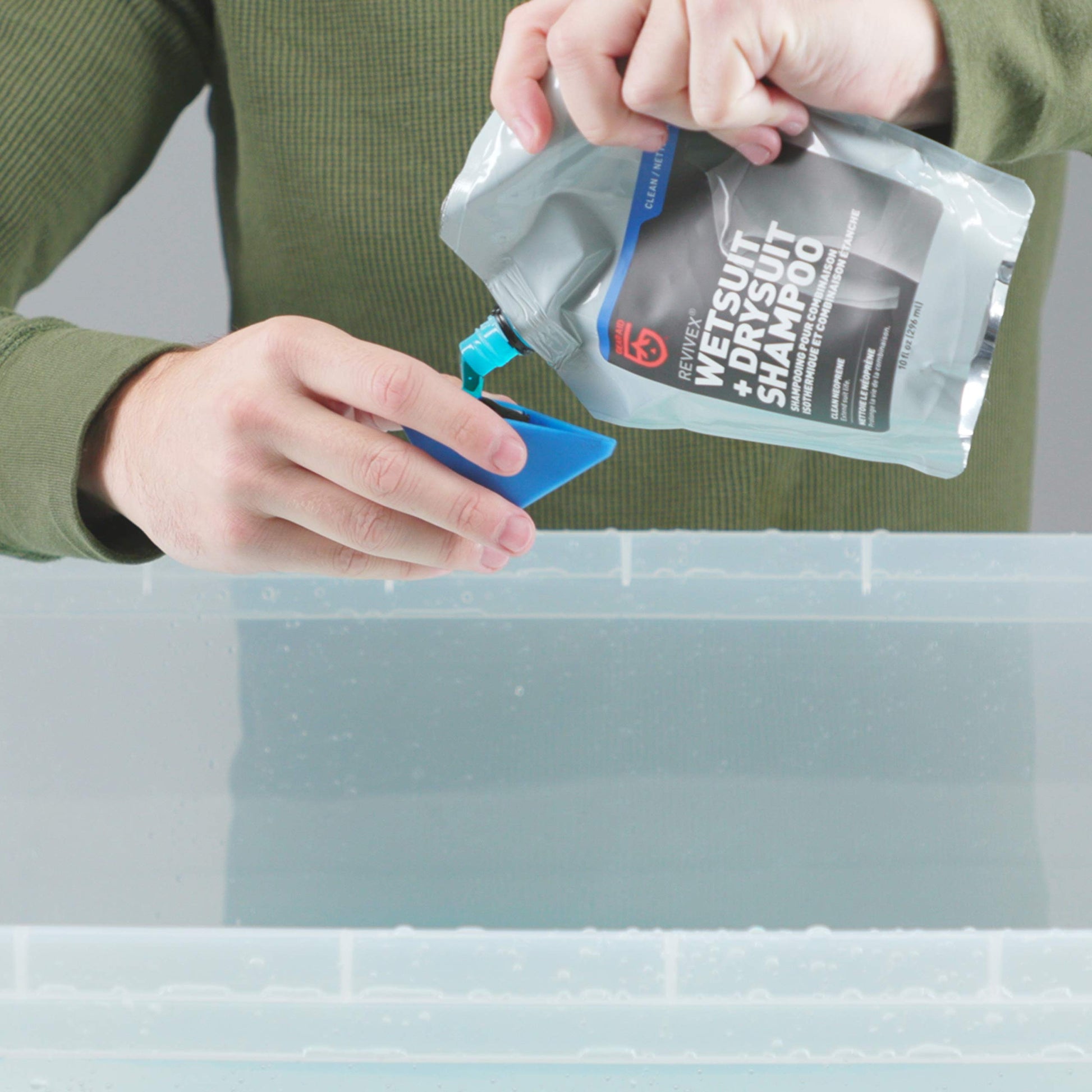 Details: Refresh and maintain neoprene gear with Revivex Wetsuit and Drysuit Shampoo. Expensive suits are prone to chlorine and salt damage after years of use. This shampoo cleans and conditions suits by removing organic residues like algae and bacteria as well as chlorine and salt deposits. The result is neoprene gear that smells fresh, stays supple, and lasts much longer. You can even use it on booties, gloves, fishing waders, and GORE-TEX fabric. With Revivex Wetsuit and Drysuit Shampoo, it has never been easier to extend the life of costly suits.