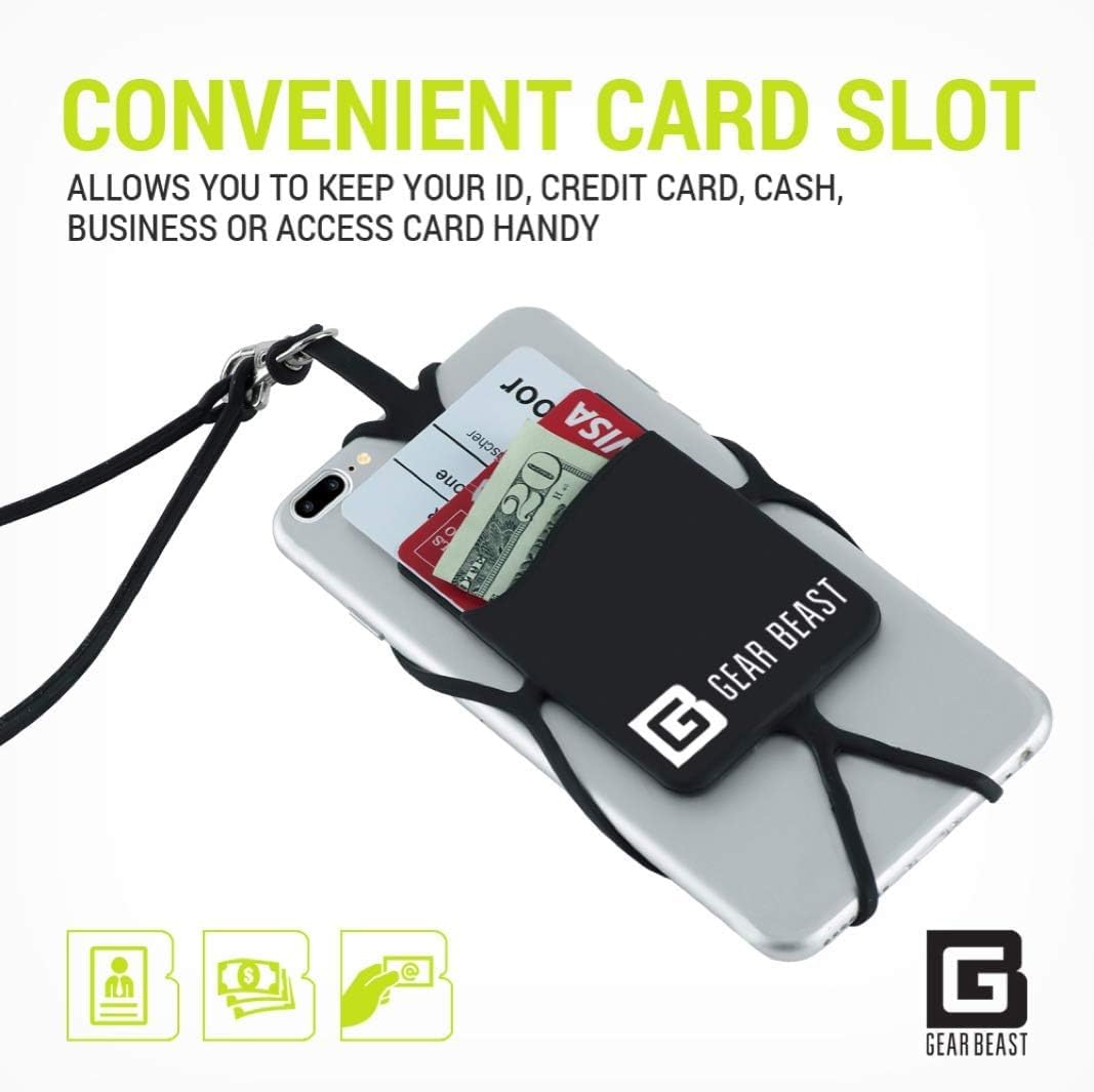 Gear Beast Cell Phone Lanyard - Universal Neck Phone Holder w/Card Pocket and Silicone Neck Strap - Compatible with Most Smartphones, Clear