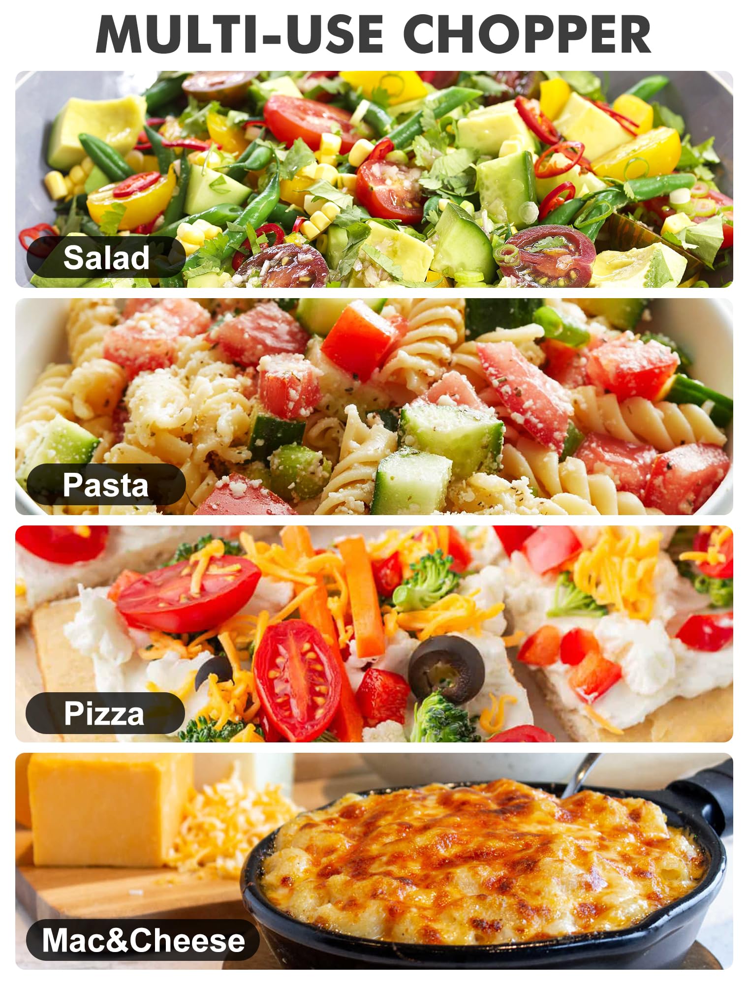 • Simply Cleaning : All parts of the pro food chopper can be fully disassembled for easy hand-washing, also top rack dishwasher safe. The chopper vegetable cutter will be the perfect choice to show your family, loved ones or friends