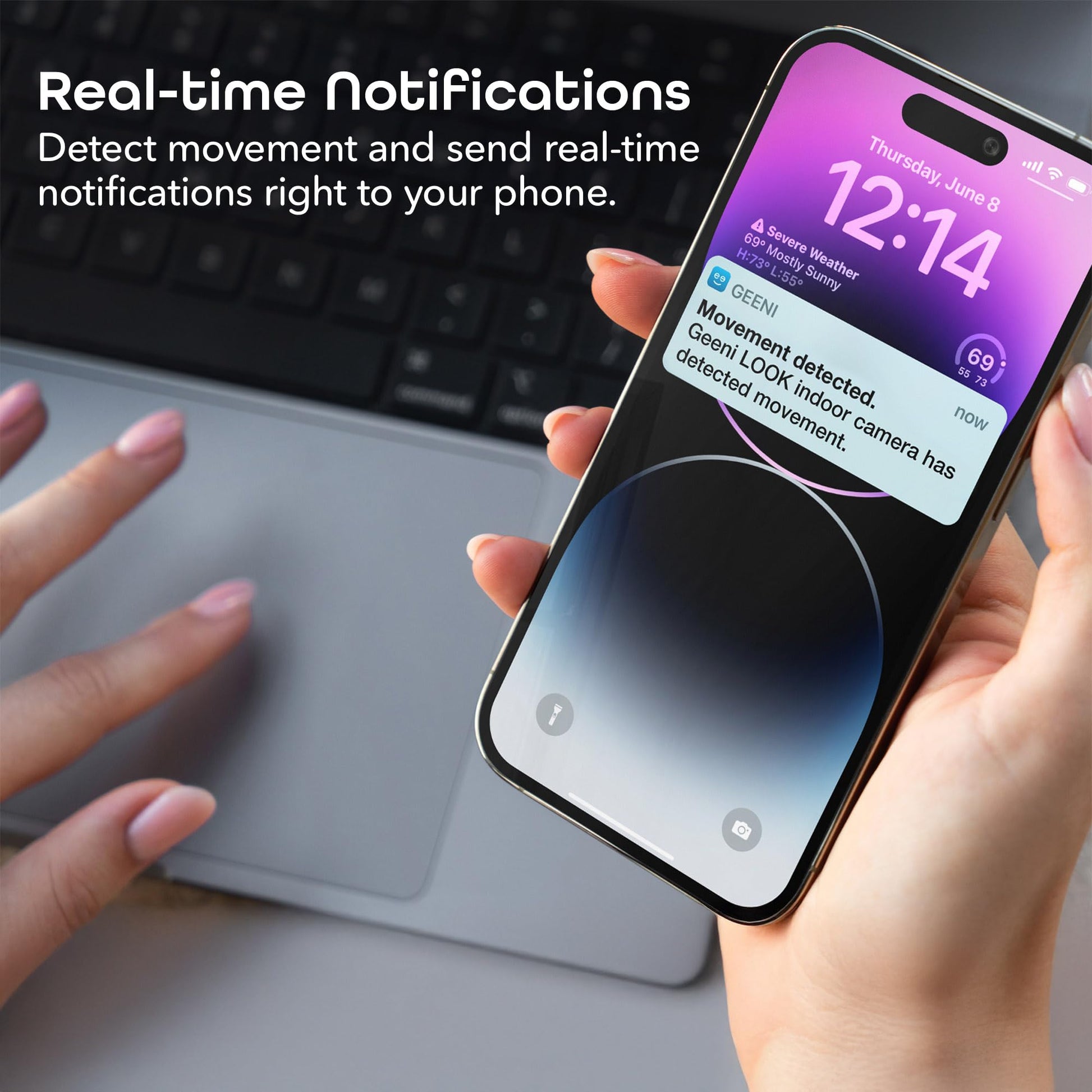 • Motion Detection Alerts: With built-in motion sensors, this home camera alerts you via push notifications whenever movement is detected. Monitor pets or family members with these indoor cameras for home security directly from your mobile device.