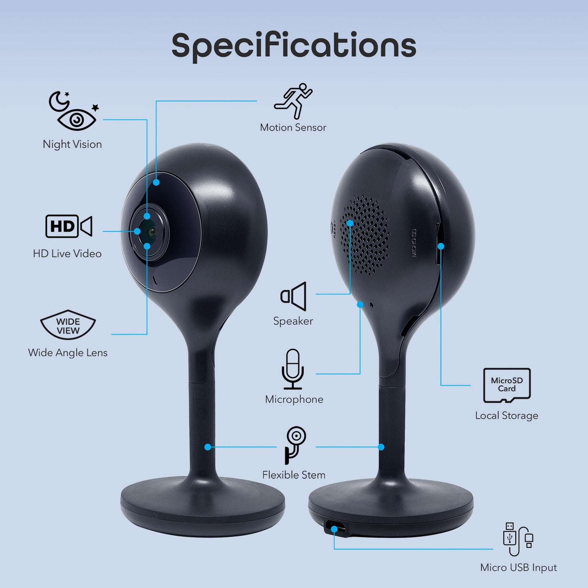 • Safe Storage Options: Easily install these smart home security cameras using the adhesive base and flexible stem. Connect to 2.4GHz Wi-Fi to stream 24/7, and save recordings via optional cloud storage or a MicroSD card (up to 128GB, sold separately).