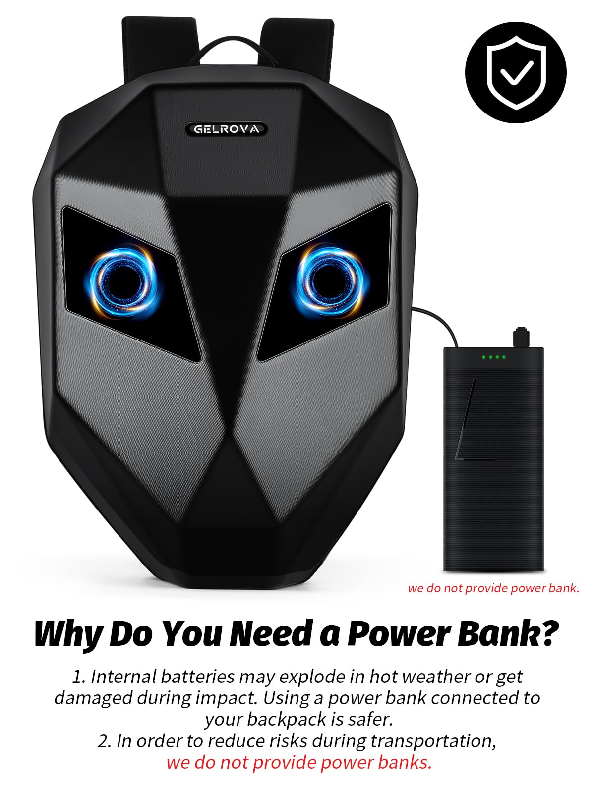 • This led backpack requires connecting to a power bank for use, but please note that the power bank is not included in the product. Therefore, it is necessary for you to prepare your own power bank separately.