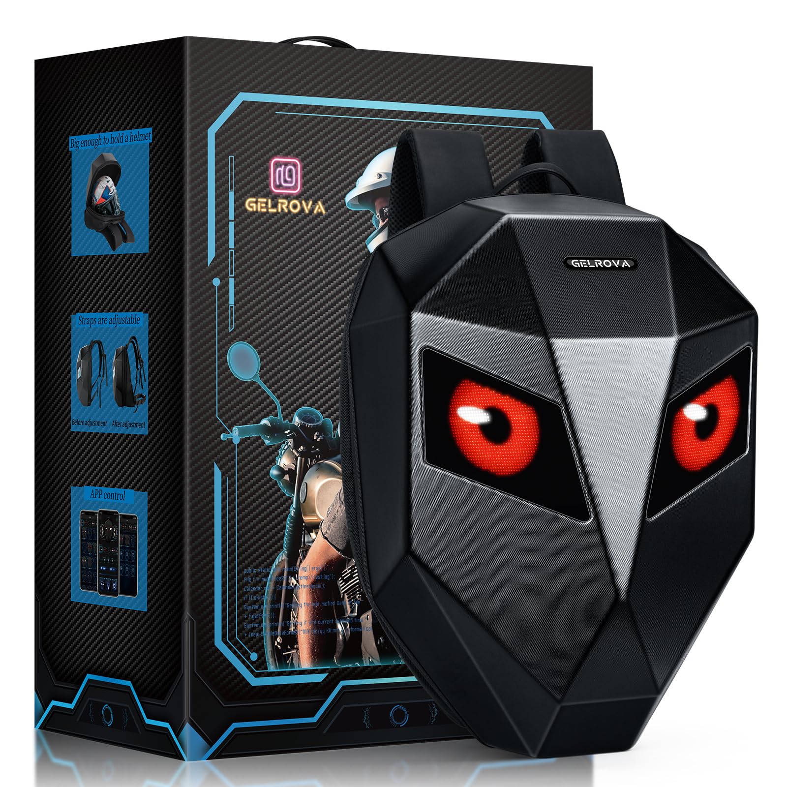 Gelrova Knight LED Motorcycle Backpack, Hard Case Riding Backpack DIY Motorbike Luggage Laptop Bag Waterproof, Large Size 19inch