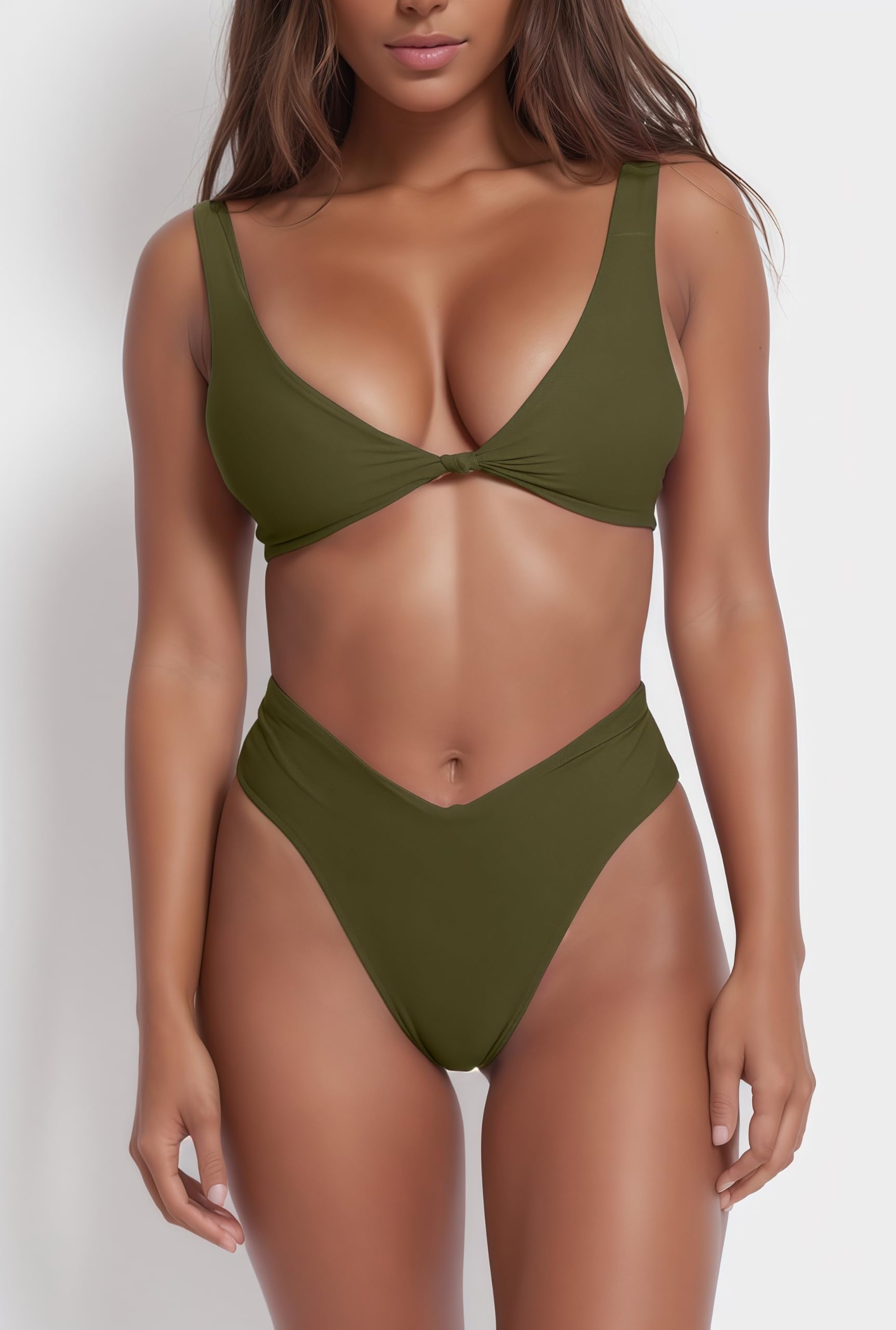 geluboao Army Green High Cut Swimsuit for Women Two Piece Sexy V Neck Push Up Swim Bras Cute High Waisted High Leg Thong Bottom M