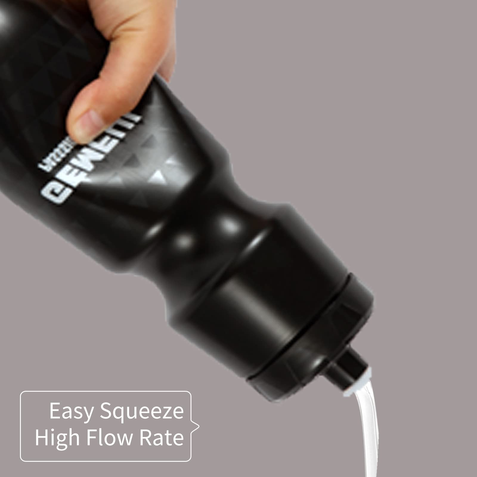 • Easy Squeeze Bike Bottle: The 24 oz cycle water bottle is made of durable, squeezable polyethylene. The push/pull cap is easy to open and close and allows for a strong flow of water to quench your thirst