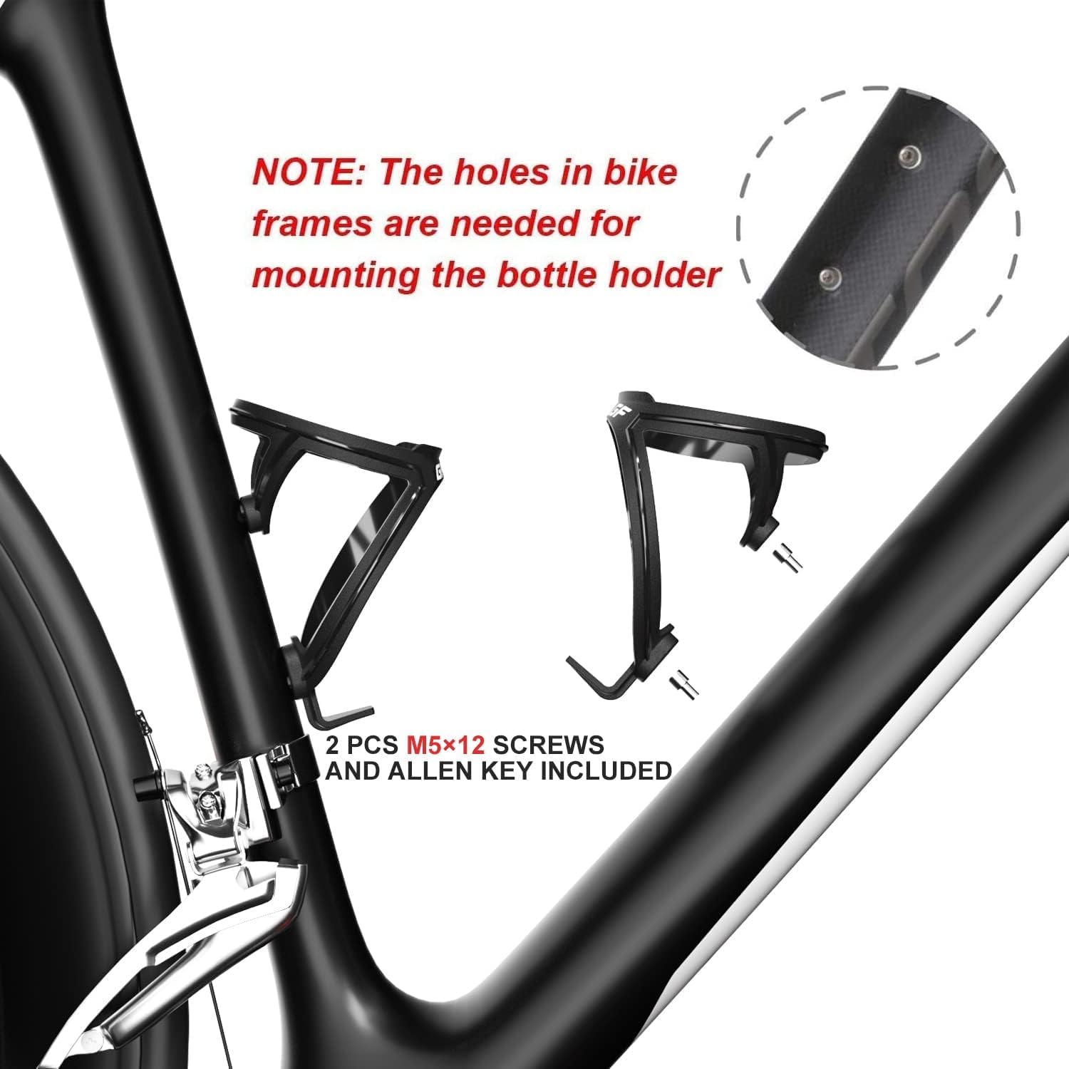 • 【Tool-Free Installation in Seconds】No extra tools required! Our bike water bottle with heavy-duty plastic cages (screws included), so you can mount them in seconds on any standard bike frame (fits pre-drilled holes). Just tighten and go—perfect for quick upgrades!