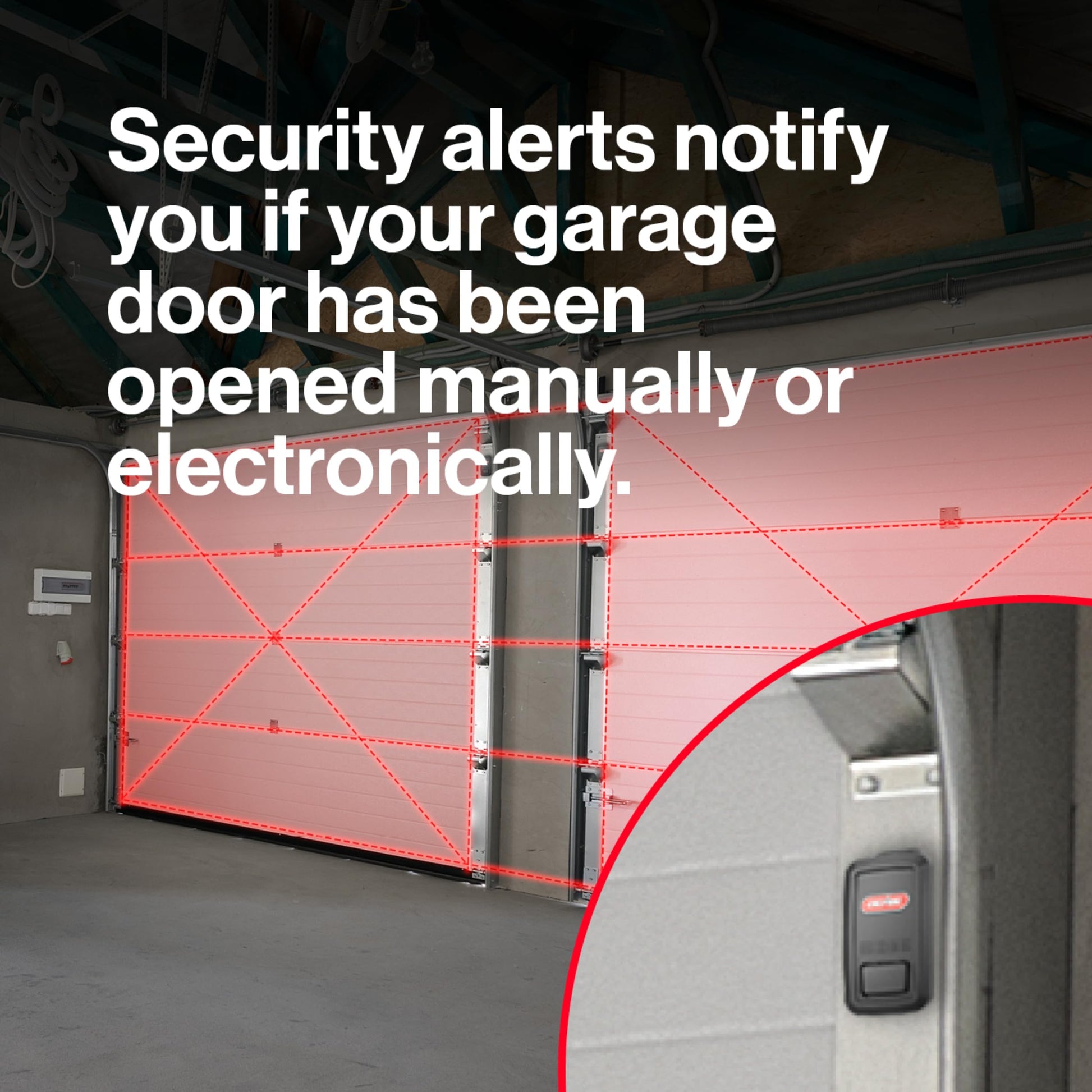 GET THE SMART SECURITY ADVANTAGE: Using a sensor attached to the garage door, Aladdin Connect monitors the garage door’s position, allowing you to be alerted when the door opens or closes – electronically or manually.
