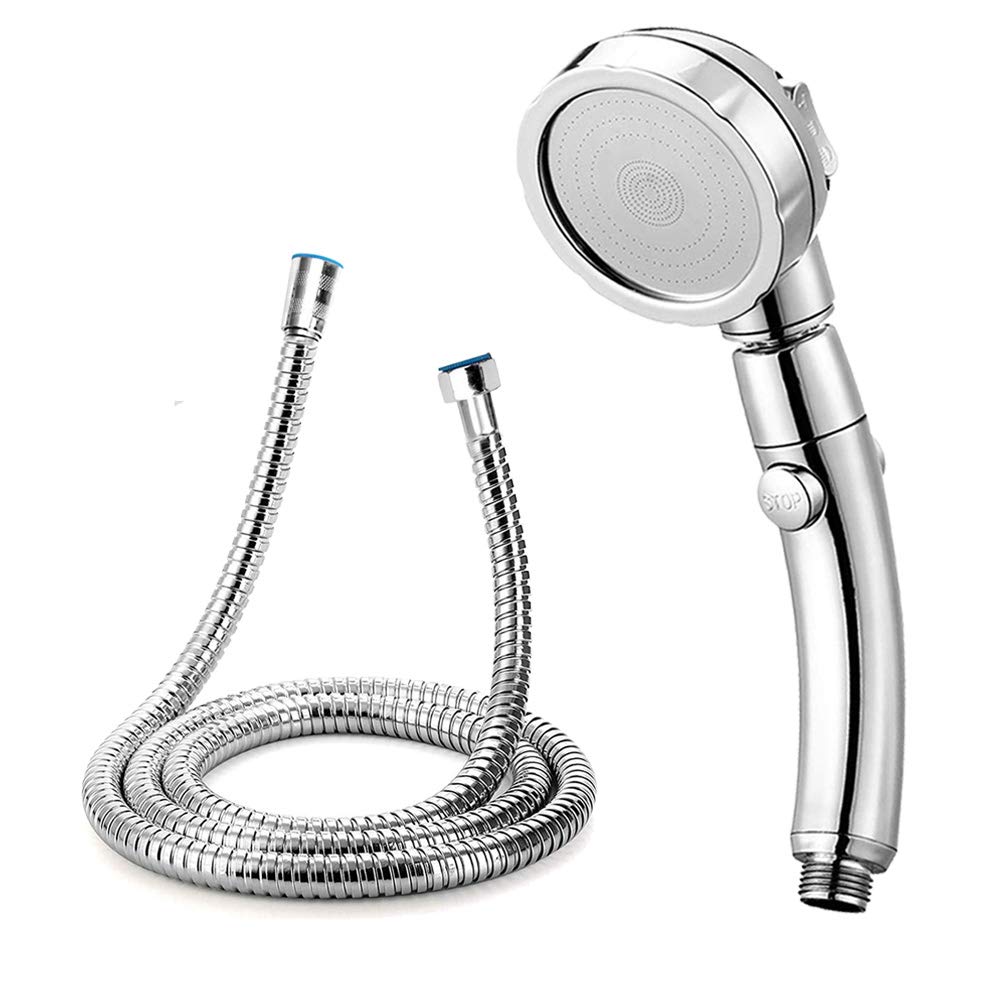 • Shower Head with Hose: 360 degree rotating adjustable handheld showerheads with ON/OFF pause switch 3 spray modes high pressure water saving showerhead. 59 Inch/4.9 Ft flexible 304 stainless steel shower hose with brass fittings, explosion-proof, RV shower hose, Chrome finish.