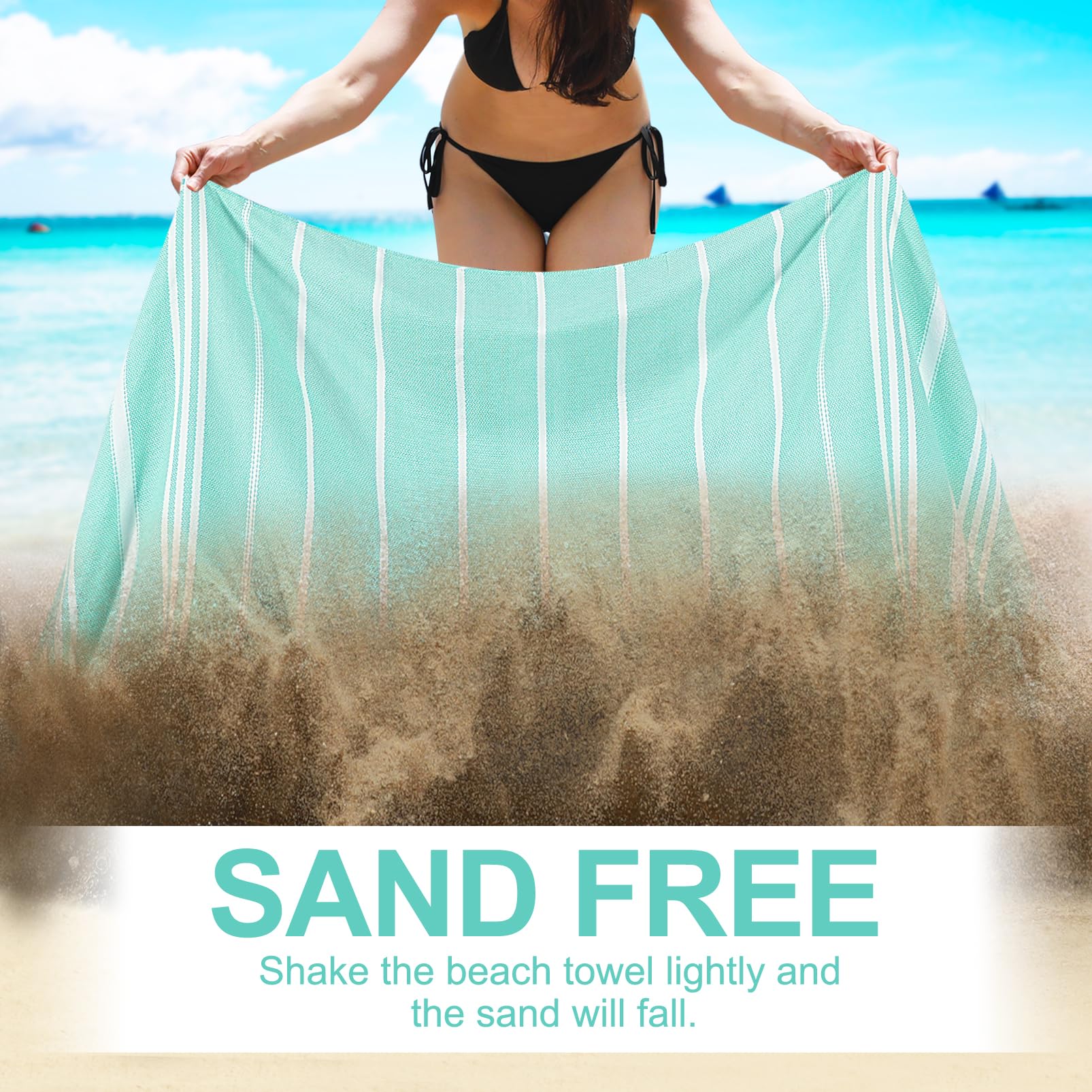 • QUICK-DRYING & LIGHTWEIGHT: No more carrying heavy, soaking wet bath towels. These Turkish beach towels are quick-drying, making them ideal for the perfect beach trip. Super easy to pack and carry, not bulky and easy to travel with. Compact, lightweight and with little storage space, they take up about a quarter of the space of traditional plush towels