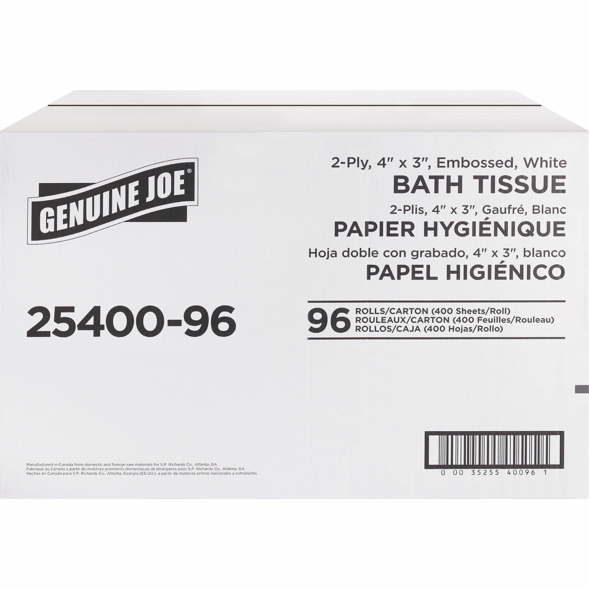 Genuine Joe Standard Bath Tissue, 3" x 4", 2-Ply, 400 Sheets/Roll, 96 Count