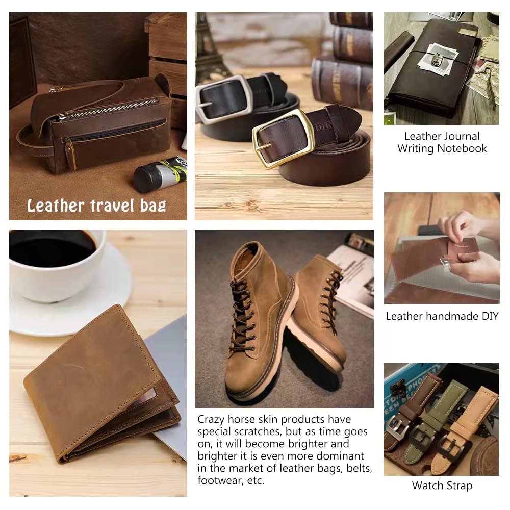 • 【FEATURE】Oil Tanned Leather Craft Supplies Are Not Scratch Proof You Can Refresh With Oils Like Coconut Oil.You Also Can Rub With a Cotton Cloth to Make The Scratches Disappear. The Leather Feels Soft and Smooth, And has a Certain Waterproof Performance. The Surface is Rich In Grease And Does Not Fade Easily. A Slight Bend Allows For a Two-color Effect With a Retro Texture.