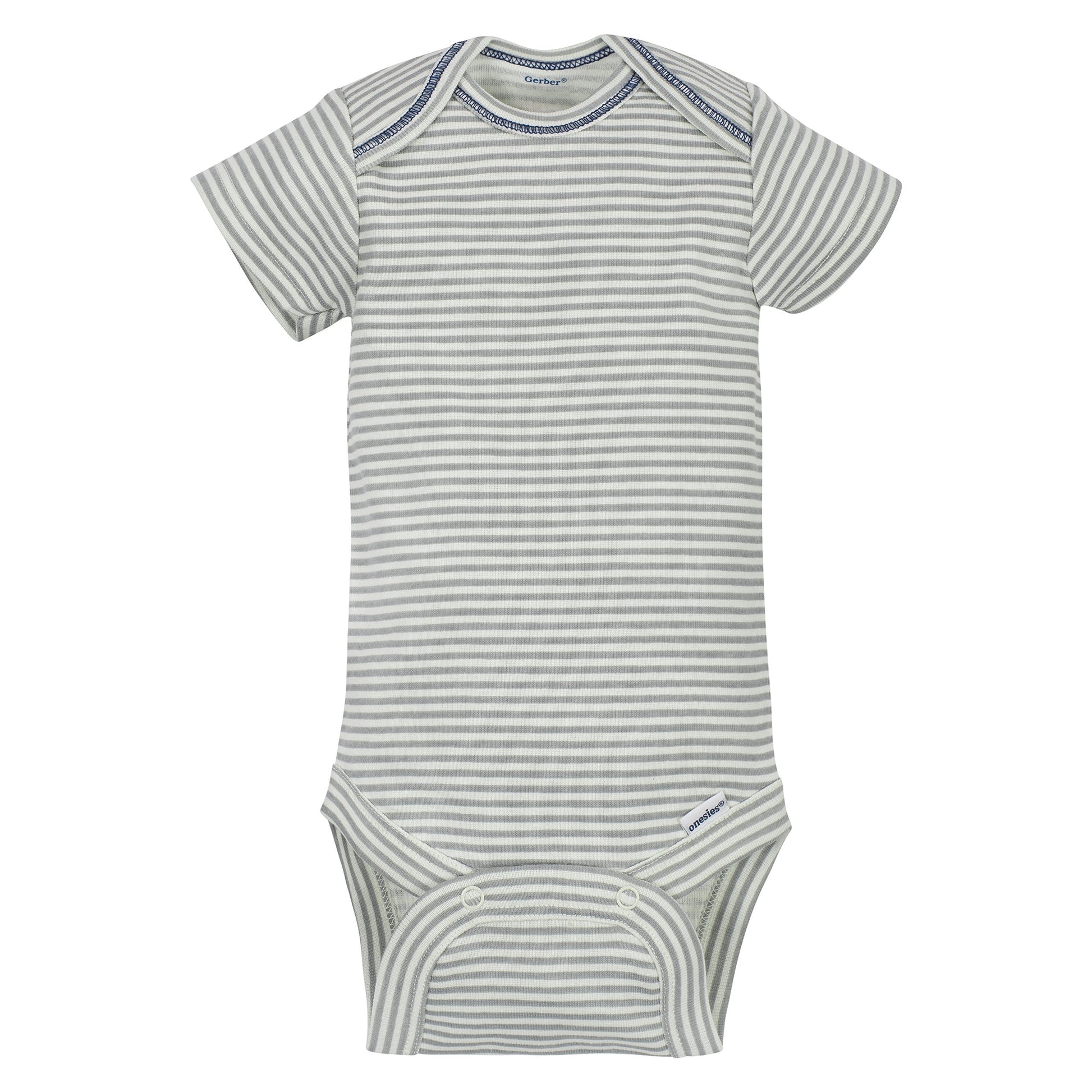 Your little boy will start the day looking his best dressed in one of these Gerber Onesies brand short sleeve bodysuits! Moms and dads will appreciate the higher-in-the-front bottom nickel-free snaps closure that makes for fast and easy diaper changes. 100% cotton rib for breathability and comfort. Mix and match with your favorite bottoms to create a complete look. An essential item for new parents, great for gift giving.