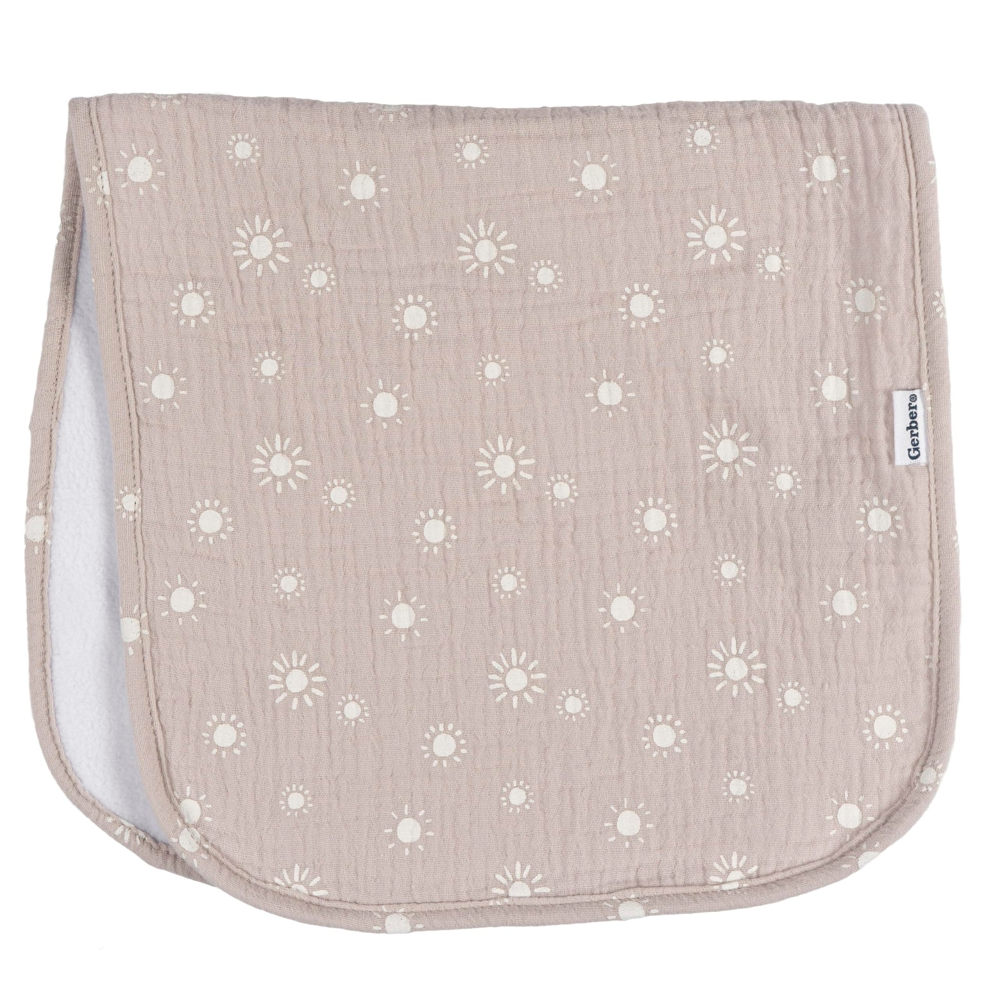 • Five prewashed muslin burpcloths with a mix of patterns and prints
