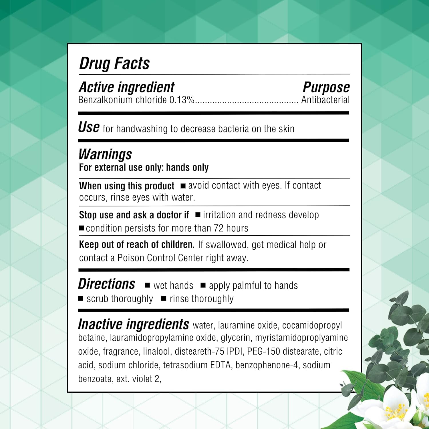 White Tea & Eucalyptus Hand Soap: An antibacterial hand soap liquid formula that has all of the hand wash cleaning power and rich soap lather with an energizing fragrance. Dermatologist tested, pH balanced and gentle enough for everyday use on your skin