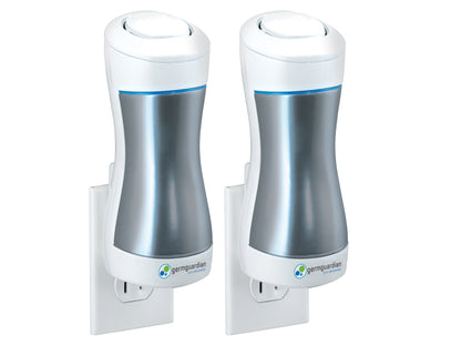 Details: Germs beware! The GermGuardian Pluggable UV-C Sanitizer and Deodorizer provides your home with fresher, cleaner air. UV-C light helps reduce airborne bacteria, viruses, mold spores*, and works to reduce volatile organic compounds. *Tested with Staphylococcus Albus, and Escherichia Coli, Aspergillus Niger, and Phi-X174. It's easy to operate and requires no set up or assembly. Its sleek and compact design is ideal for small spaces. Just plug it in to a wall socket to reduce bacteria and fight odors mildew, pet areas, and more. Ideal for small rooms such as bathrooms and laundry rooms. 2-Pack