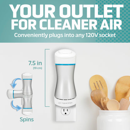 • COMPACT DESIGN FOR ANY SPACE - This 7.5-inch wall-pluggable sanitizer is ideal for spaces of all sizes, from kitchens and bathrooms to basements and nurseries. It's compact size conveniently plugs into any 120V socket.