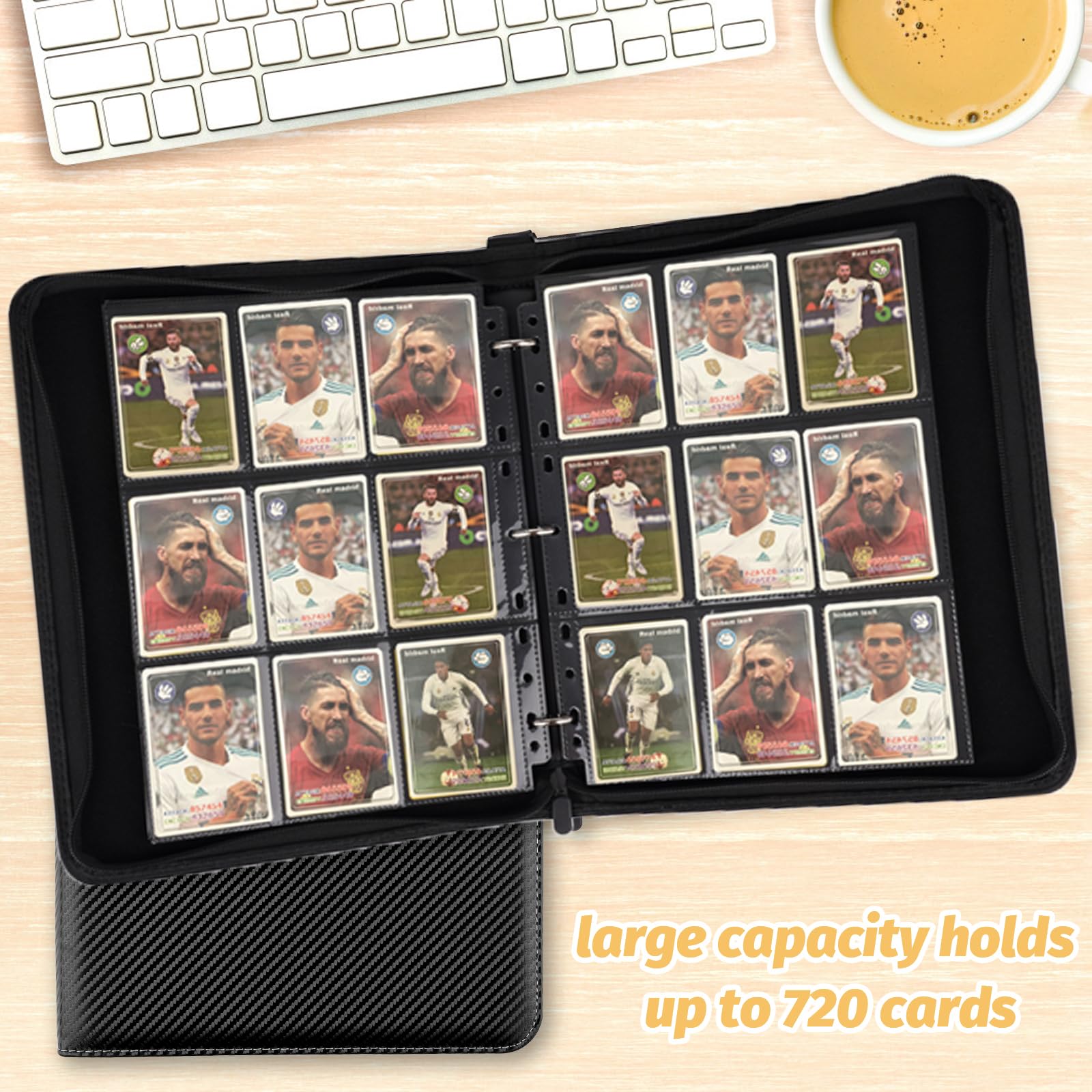 • 【3-Ring Binder with 40 Pages Sheets】 The 3-ring design is convenient for you to add or remove sheets at will. 9-Pocket binder with 40 pages of sheets can hold up to 720 cards, providing plenty of space to get all your cards organized.