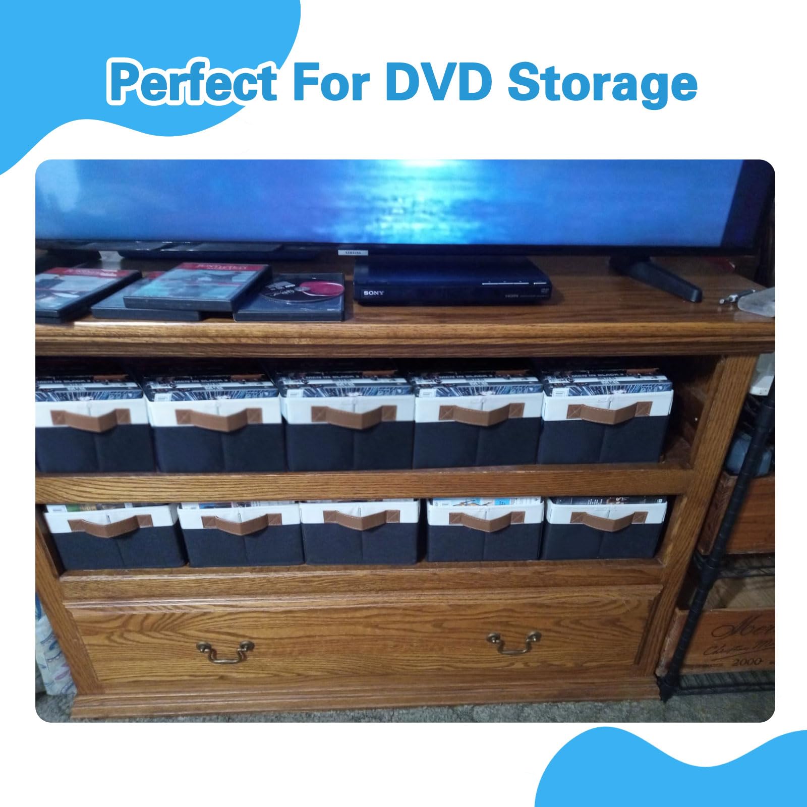 • 👍【FOLDABLE CD STORAGE BOXES】The DVD storage bins allows you to easily place it when not in use, just by pulling out the stiff bottom cardboard, saving space when not in use or transportation. They are quite easy to assemble, place the stiff bottom cardboard inside and it's ready
