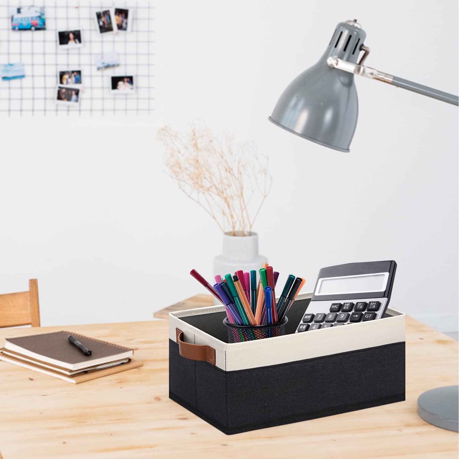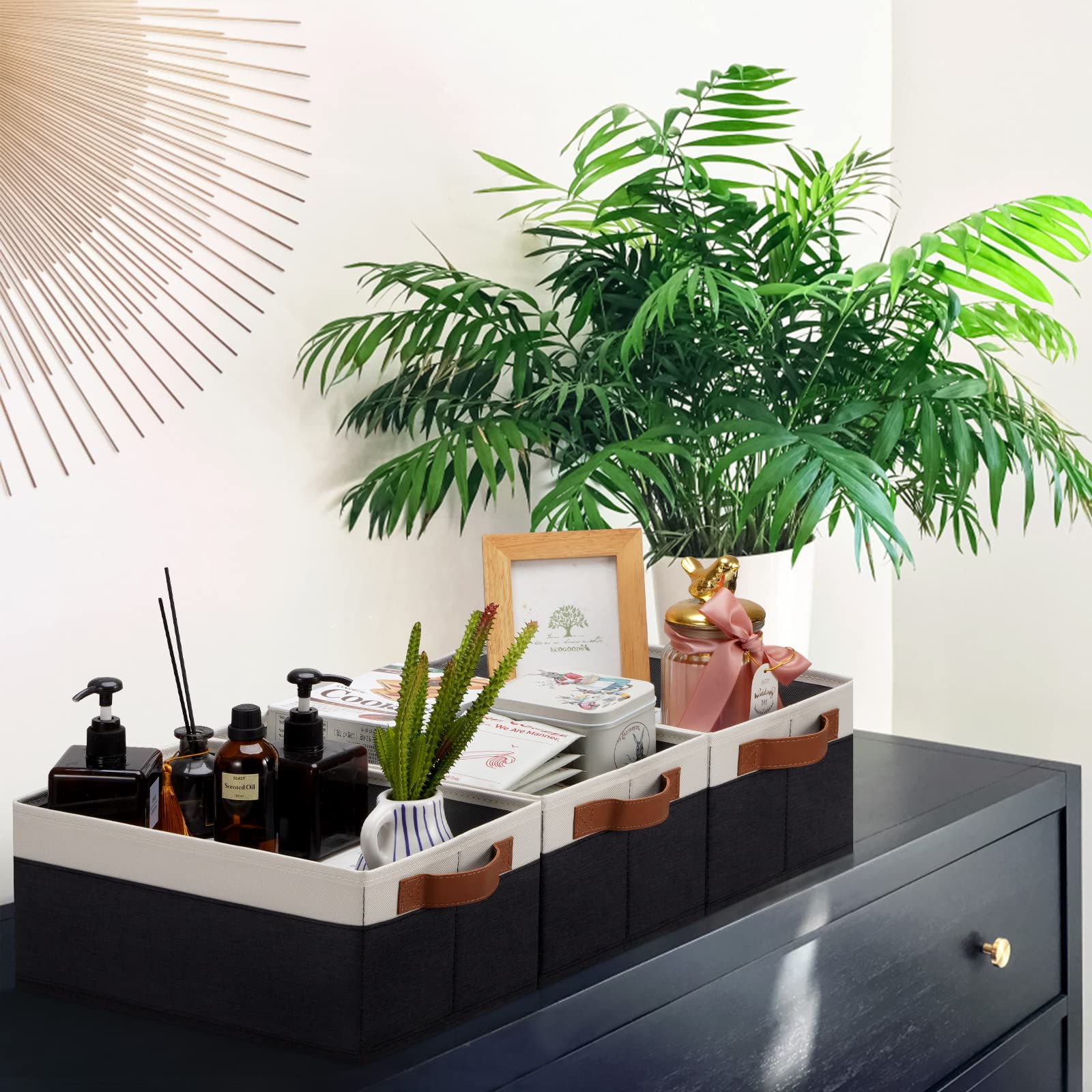 GhvyenntteS Storage Baskets for Organizing, Fabric Storage Bins with Leather H&les, Foldable Rectangular Storage Baskets for Shelves, Closets, Home, Office(Black/White, 6 Pack)11.8X7.9X5.1 in