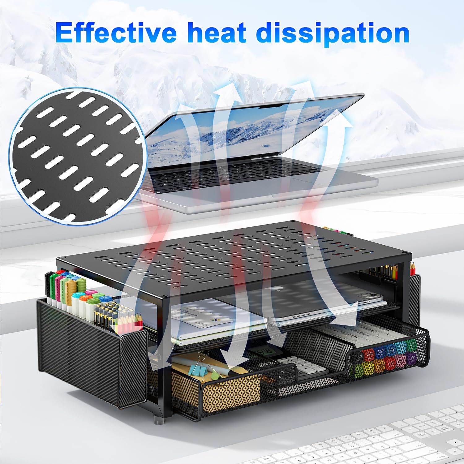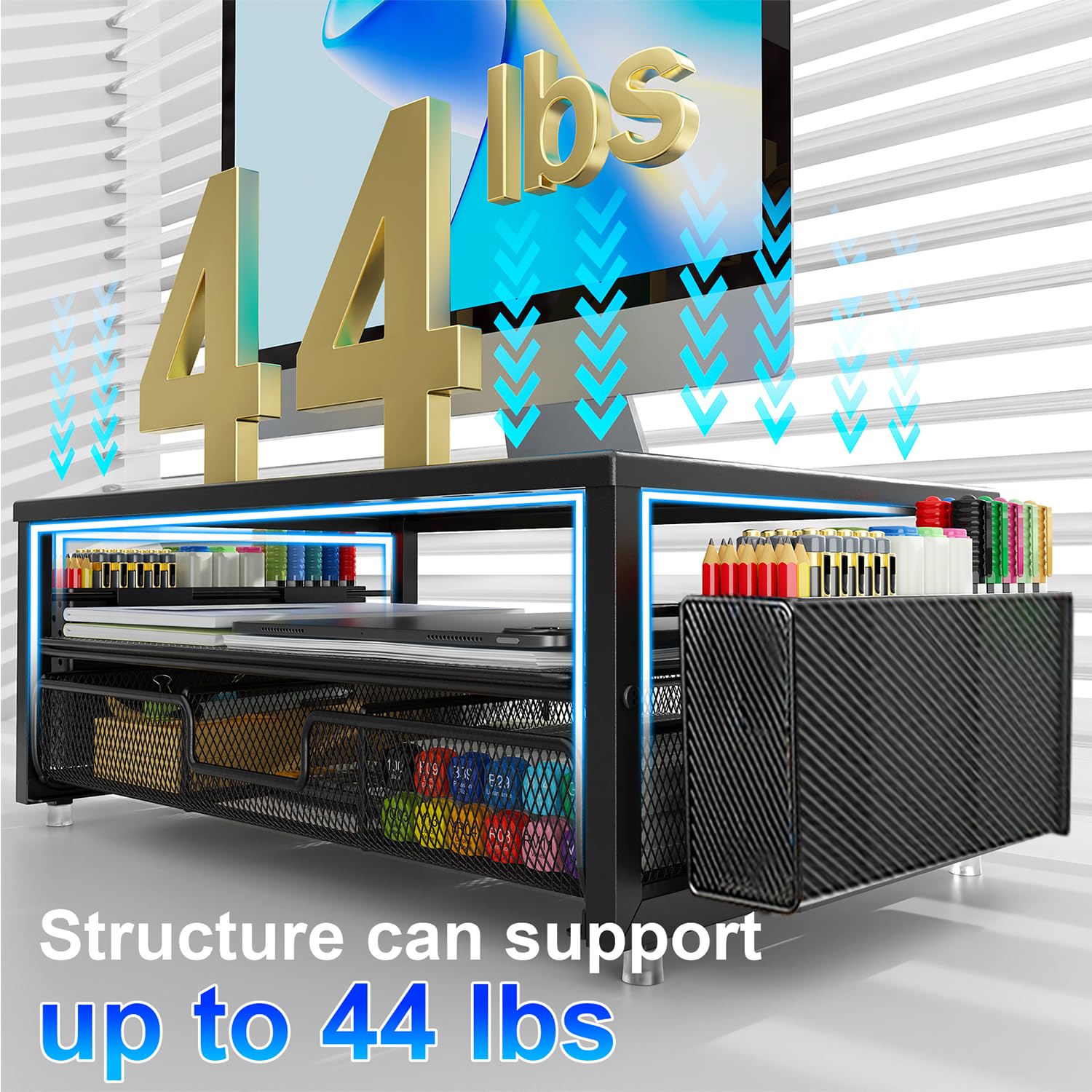 • 【Improved Work Efficiency】: The monitor riser comes with a sliding drawer and two pen holders. It accommodates various office desk items, saving space. It helps you quickly identify the contents of each compartment, doubling your work speed.