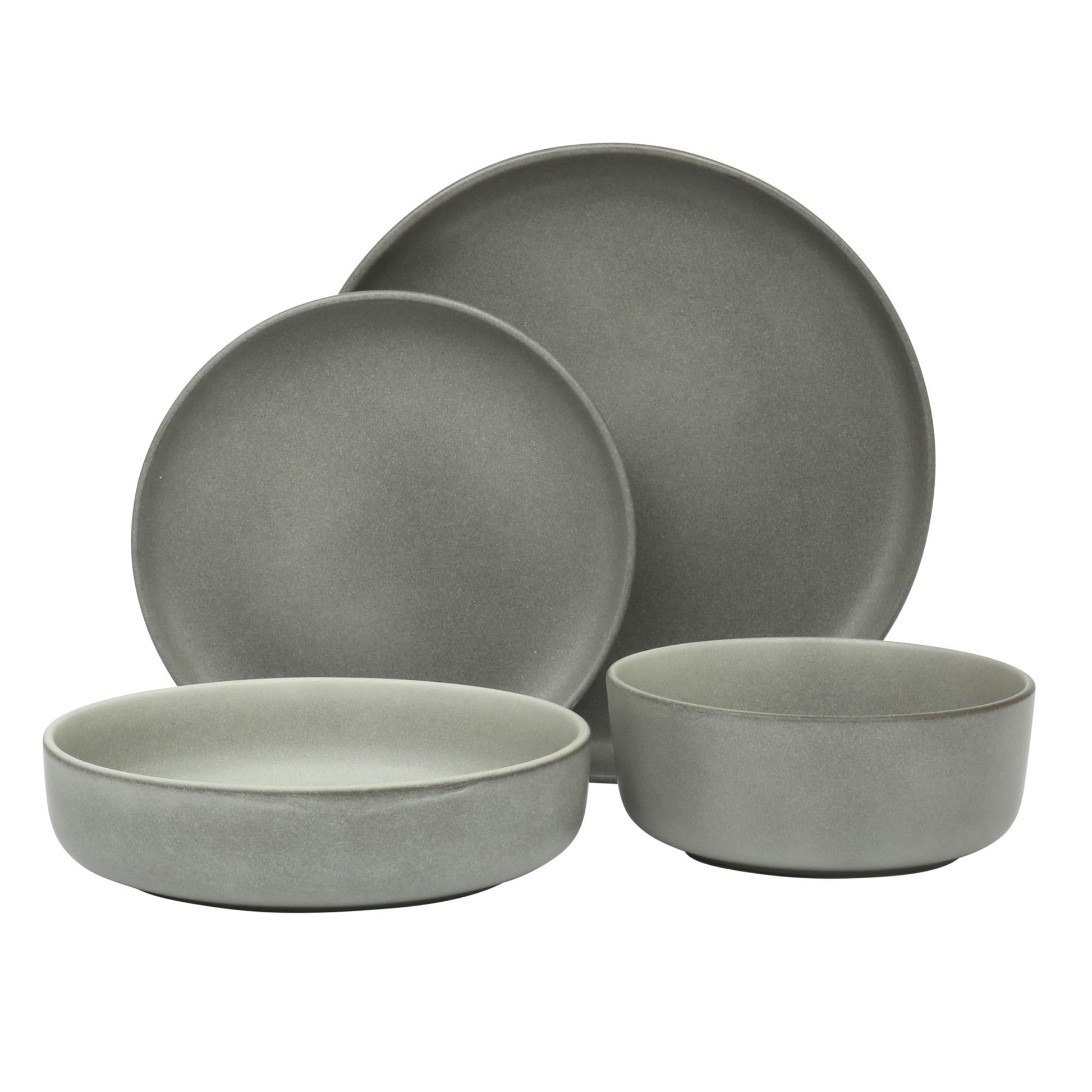 Gibson Elite Pasco 16 Piece (Service for 4) Plates and Bowls Double Bowl Reactive Glaze Dishes Stoneware Ceramic Dinnerware Set - Grey
