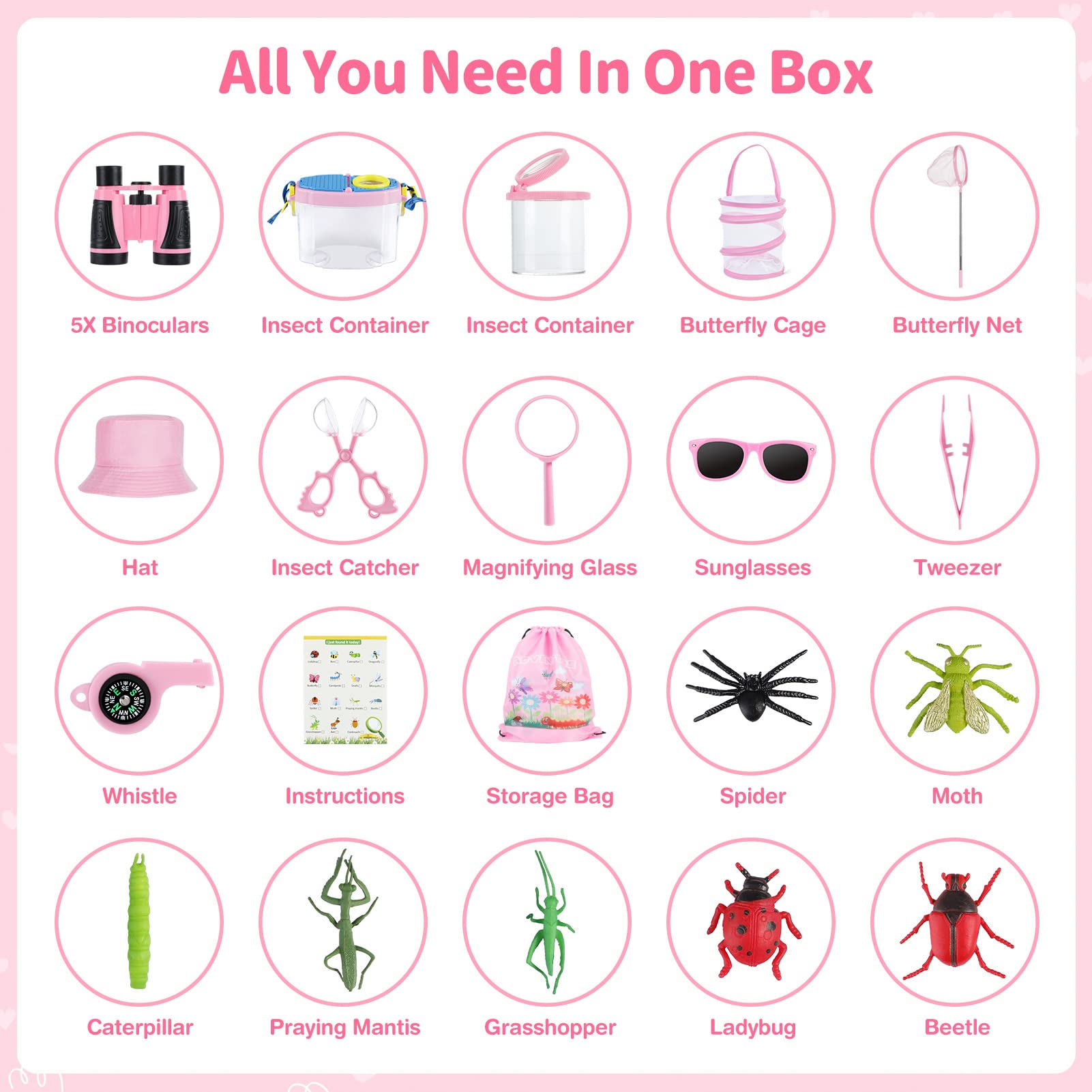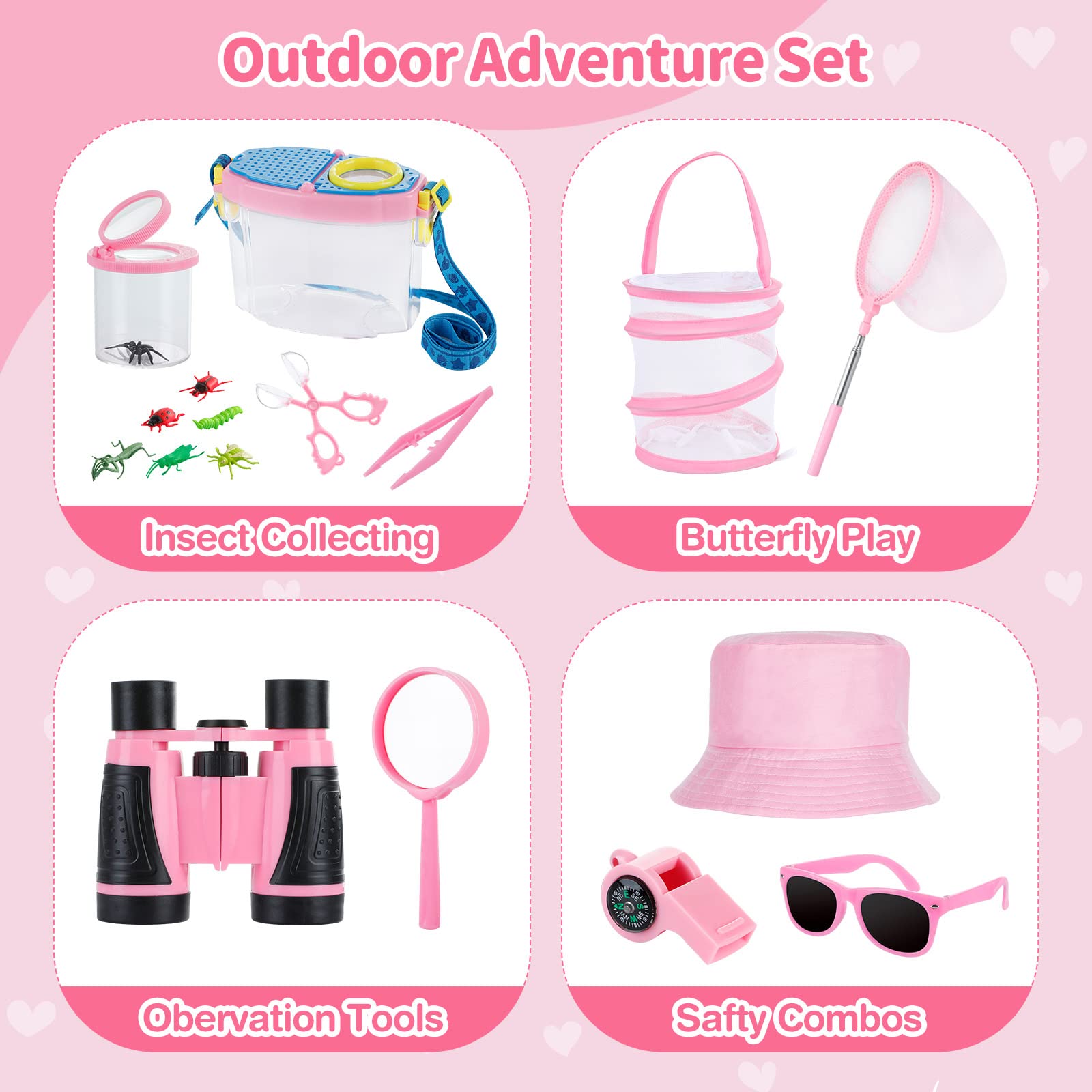GIFTINBOX Bug Catcher Kit for Kids - Outdoor Explorer Toys Set for Kid - Bug Catching Kits with Binoculars Nature Adventure Toy for Girls Boys - Toddler Exploration Gifts for Girl 3-12 Years Old