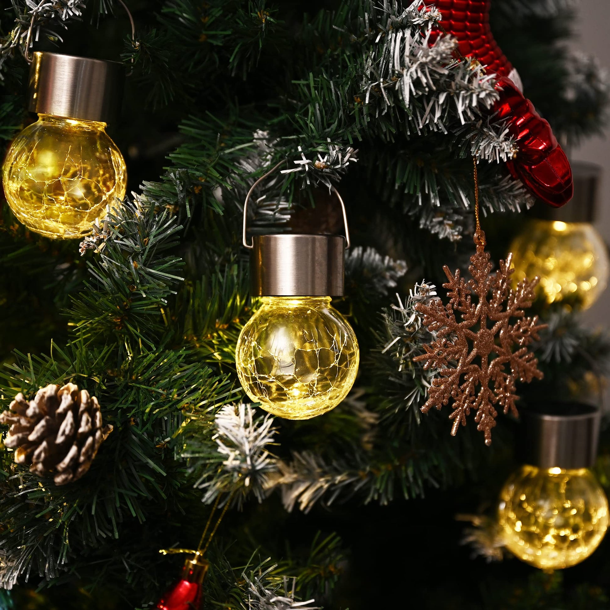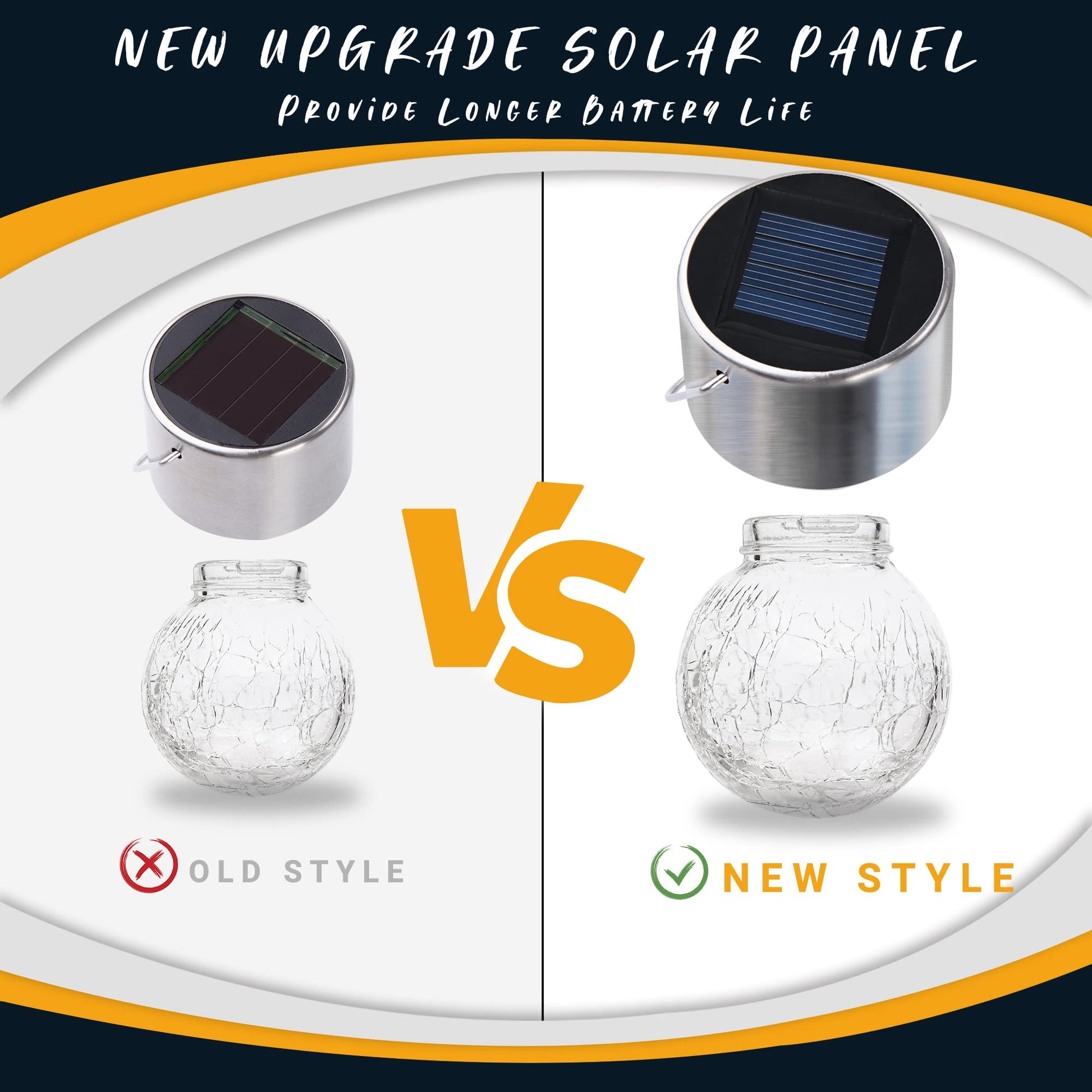 • 【Premium Material】Featuring a shimmering crackle glass globe, a sturdy stainless-steel hook and newest upgrade solar panel, solar hanging lights add a superior light effect to your garden