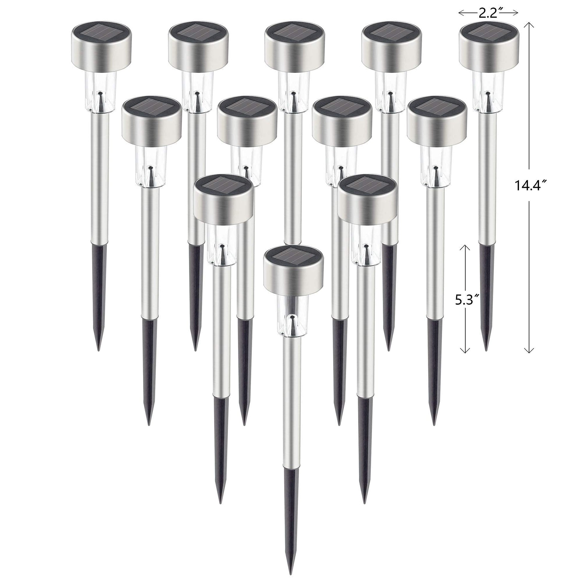 GIGALUMI Solar Pathway Lights 12 Pack, Stainless Steel IP44 Waterproof Auto On/Off Outdoor LED Pathway Landscape Solar Lights for Garden, Yard, Patio, Path and Walkway. (Cold White)