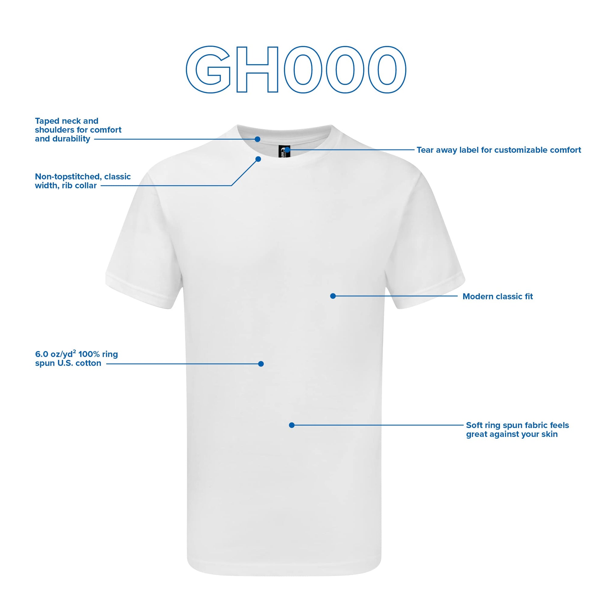 The GH000 Gildan Hammer Adult Shirt is made of 100% U.S. ring spun cotton (solid colors) and 50% Cotton, 50% Polyester (heather colors) fabric that feels soft against the skin. It has the modern classic fit you will love and a tearaway label for customizable comfort. Whether hanging out with friends, running errands, or going out to eat, it matches your lifestyle. Put your own mark on it with DTG, screen printing, embroidery, heat transfers for discharge printing.