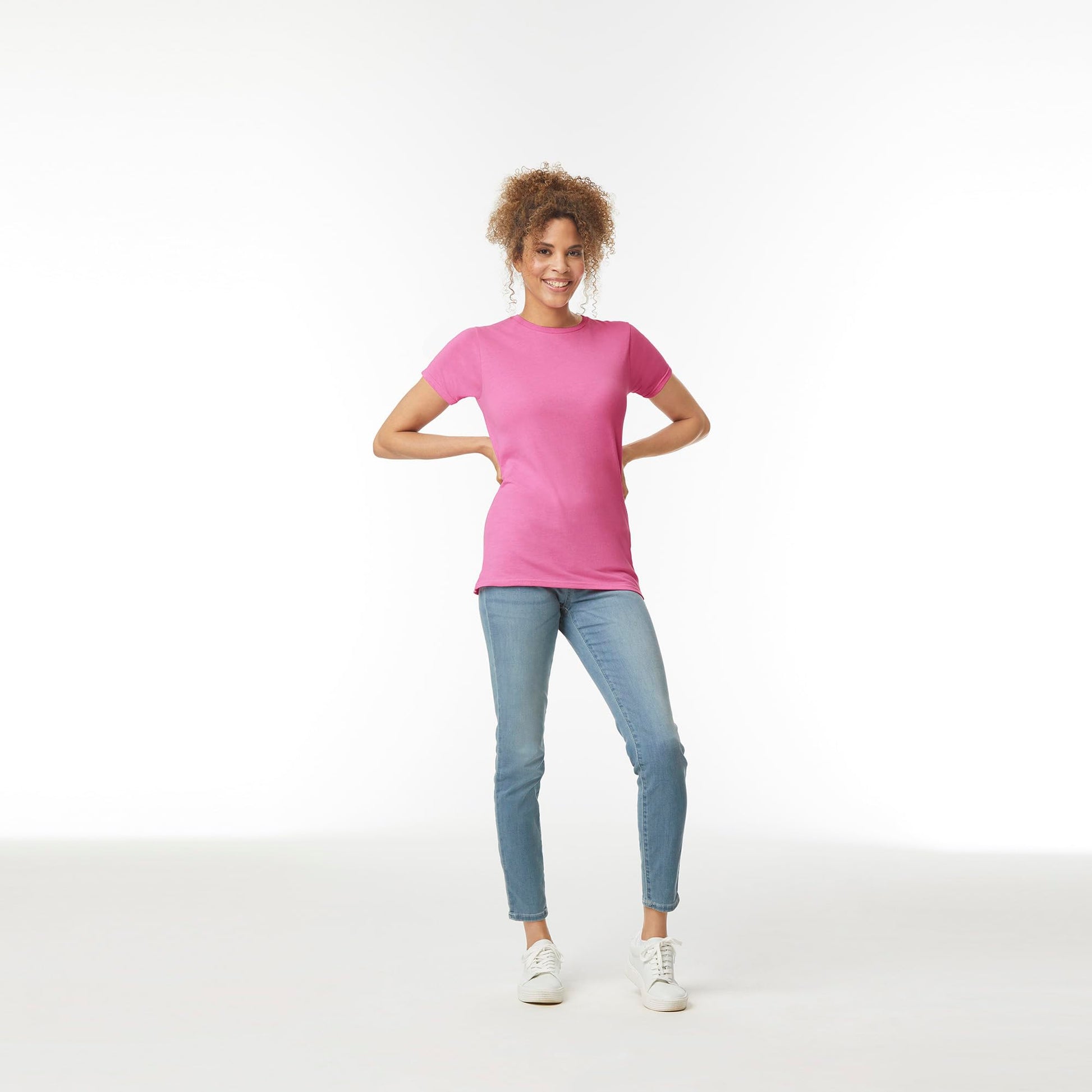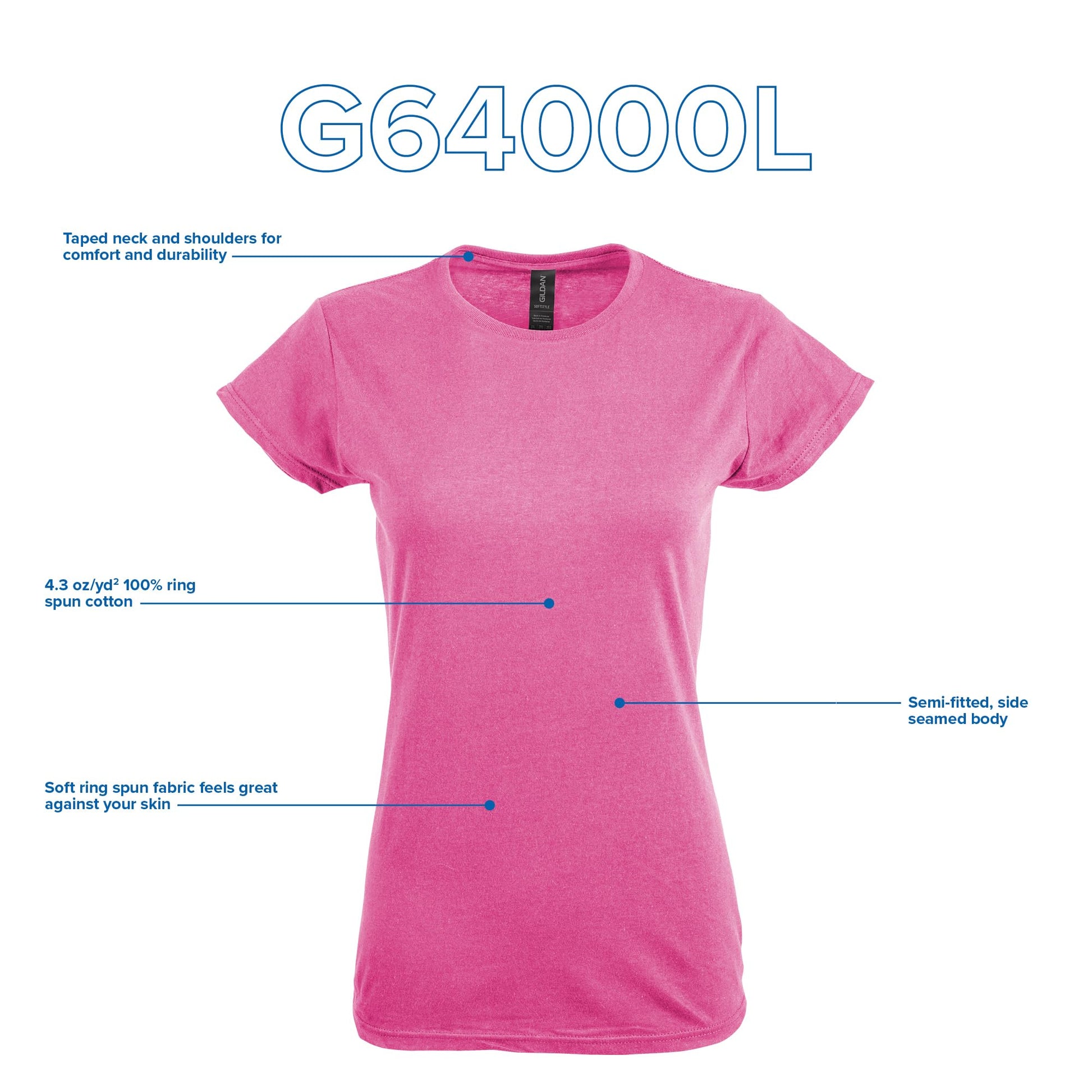 For a shirt that looks equally stylish paired with jeans or a skirt, the Gildan Women’s Softstyle Cotton T-Shirt offers a lot. Its 100% ring spun cotton feels soft against your skin; and the semi-fitted, side-seamed construction provides a comfortable fit. Decorate it using screen printing, DTG, embroidery, iron-on decorations, bleaching or discharge.