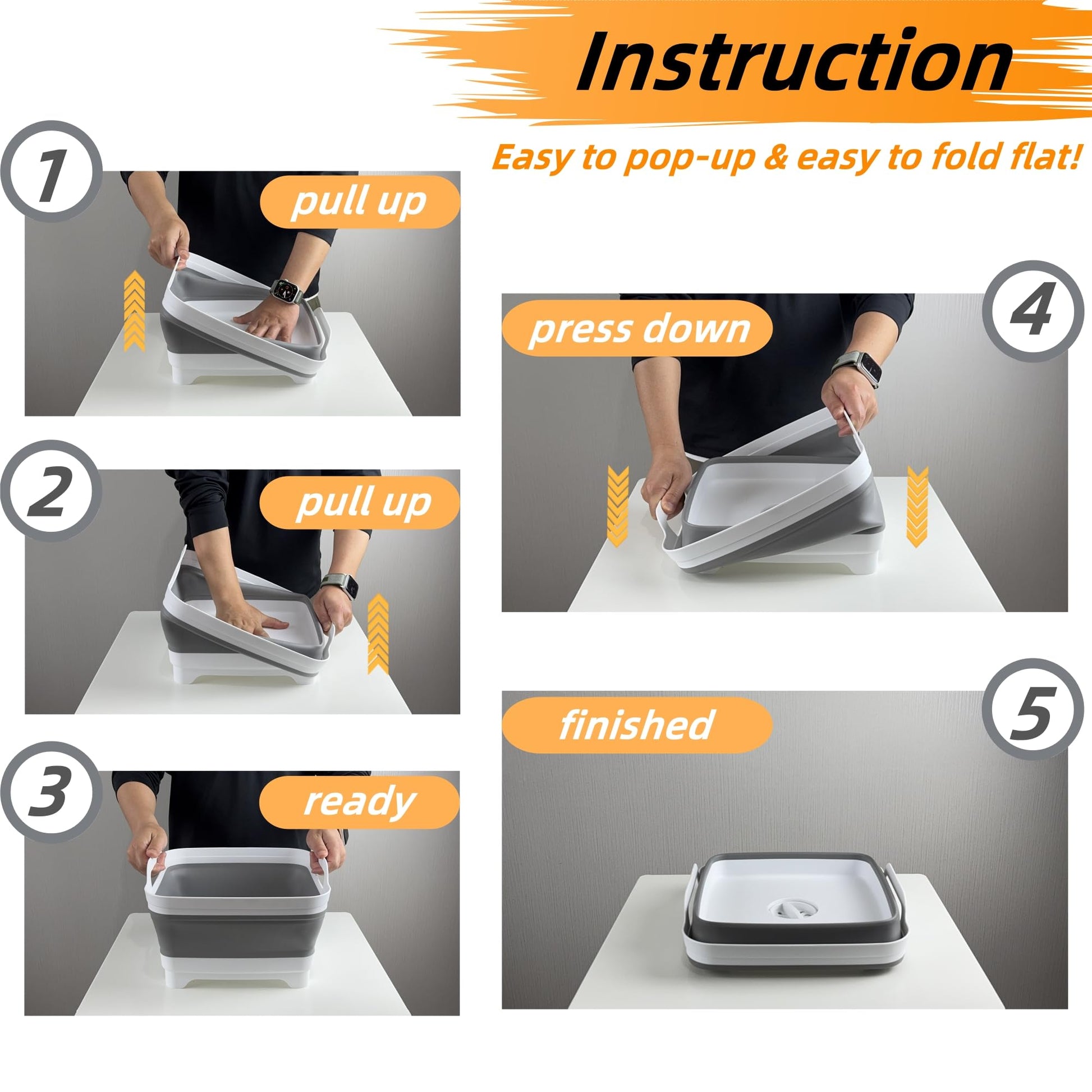 • Space-Saving & Portable: Expanding to 12 x 12 x 7.7 inches and folding to just 3 inches, this dish tub is ideal for compact sinks or other small areas. It easily folds flat for convenient storage, keeping your space tidy when not in use