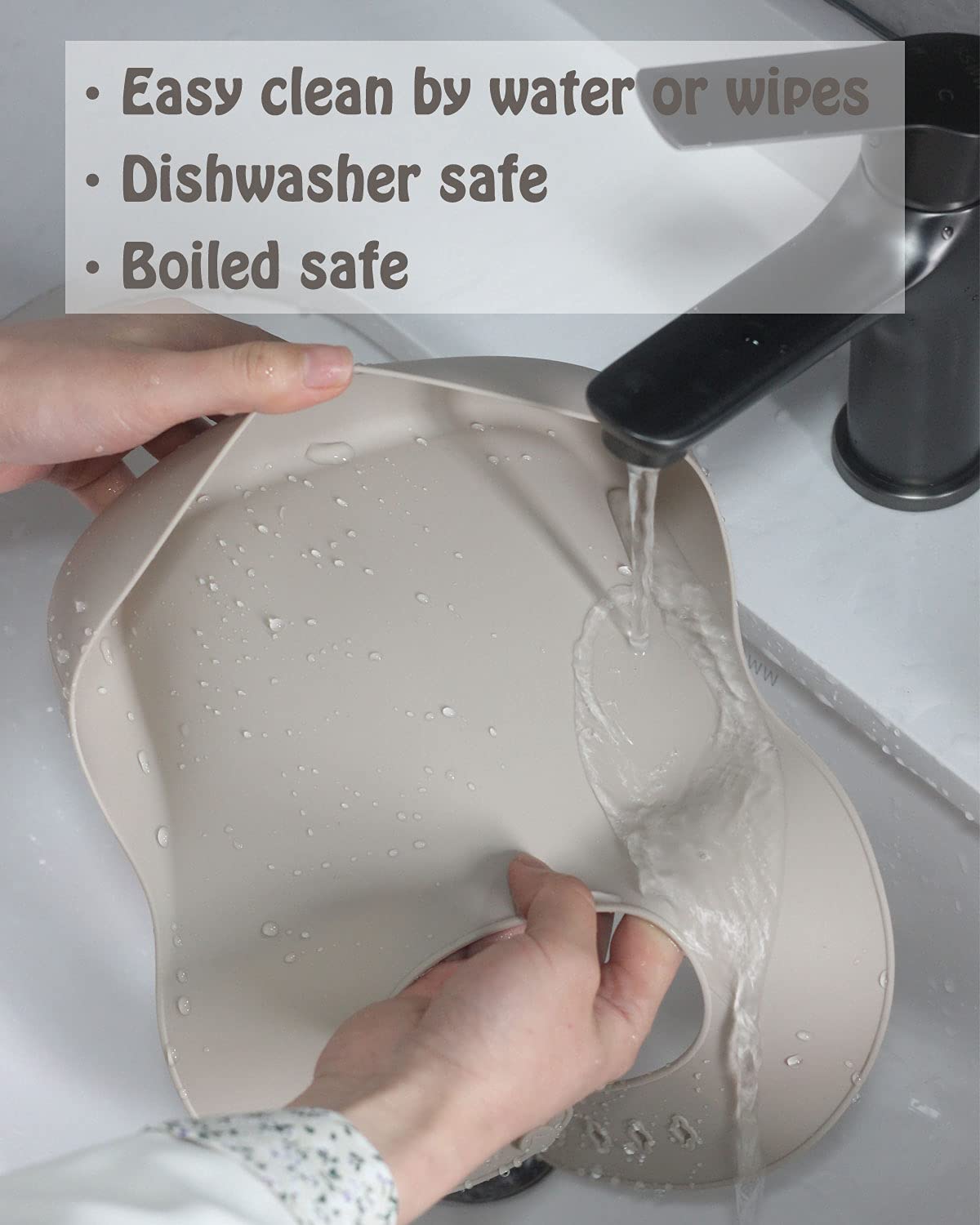 • ENJOY MESS-FREE & DO LESS LAUNDRY – The reinforced food catcher of the waterproof silicone bibs could stay open. The food catching pocket could catch most of the dropped foods, water & milk, etc. It will prevent our baby’s clothing from stains & wet during the meal. NO more piles of laundry every day.