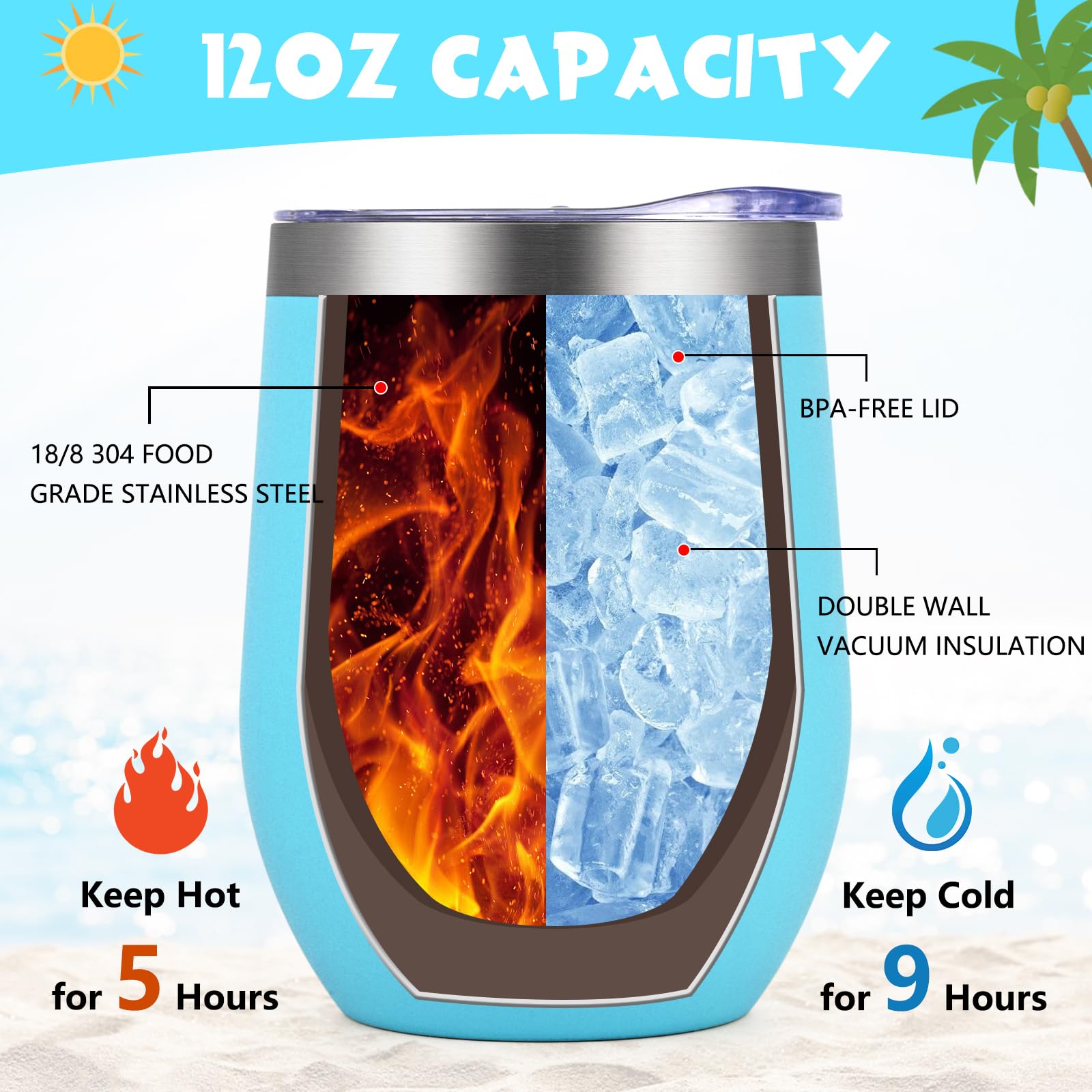 • SUPERIOR INSULATION: Engineered to keep your beverages at the perfect temperature, our wine tumblers with double-wall insulation promise to keep your drinks ice cold for 9 hours or piping hot for 5 hours, ensuring maximum enjoyment at any time of the day.