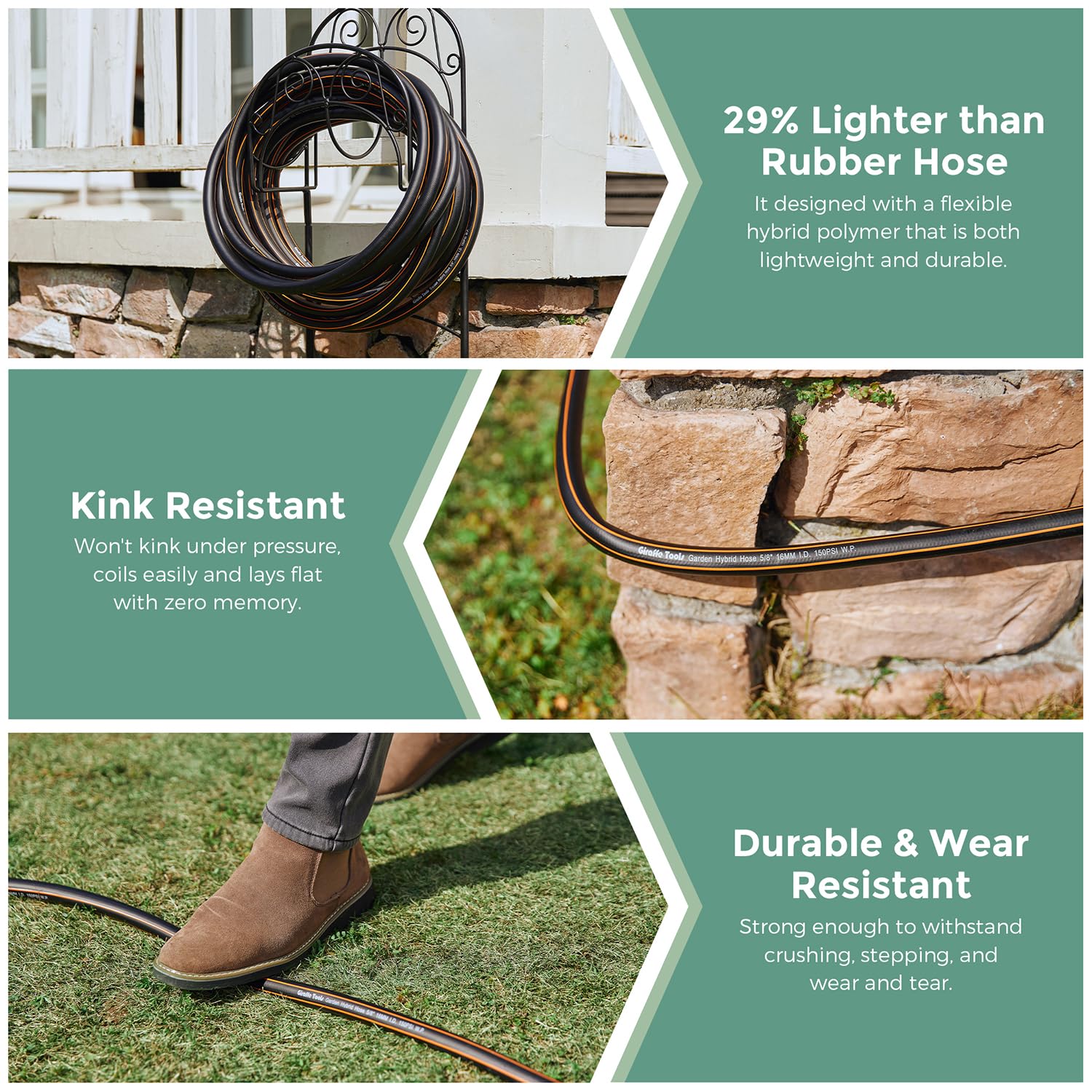 • Lightweight and Durable: Using the latest hybrid material from rubber and polymer, it is much lighter, more durable, and wear-resistant than the traditional rubber hose.