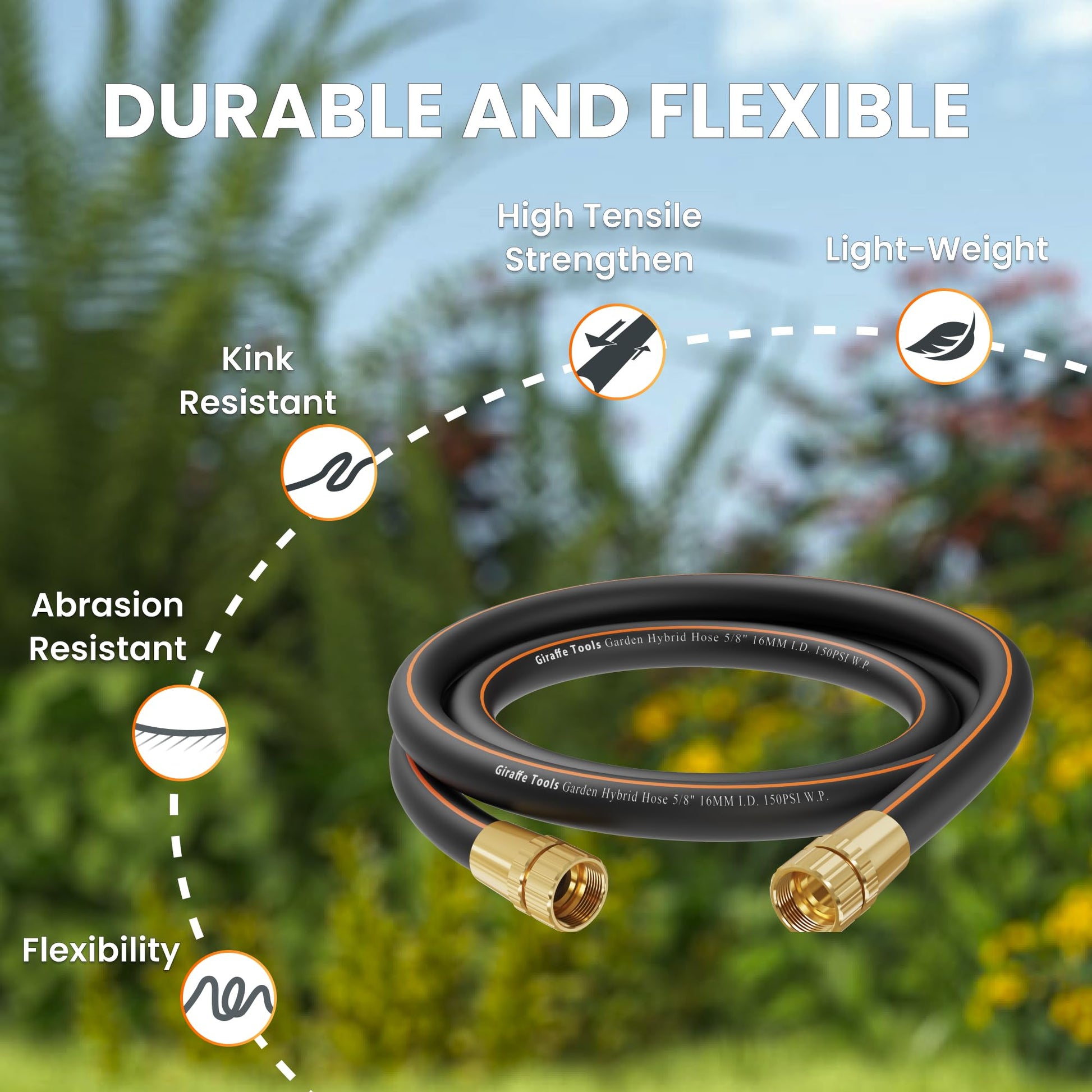 • Premium Quality: Combined with 2 layers of lightweight hybrid and 1 layer of bursting resistant polyester mesh, Giraffe Tools hose has been tested rigorously to confirm burst strength, kink and abrasion resistance, leakproof seal, and connection strength. It can be used as hose reel leader hose.