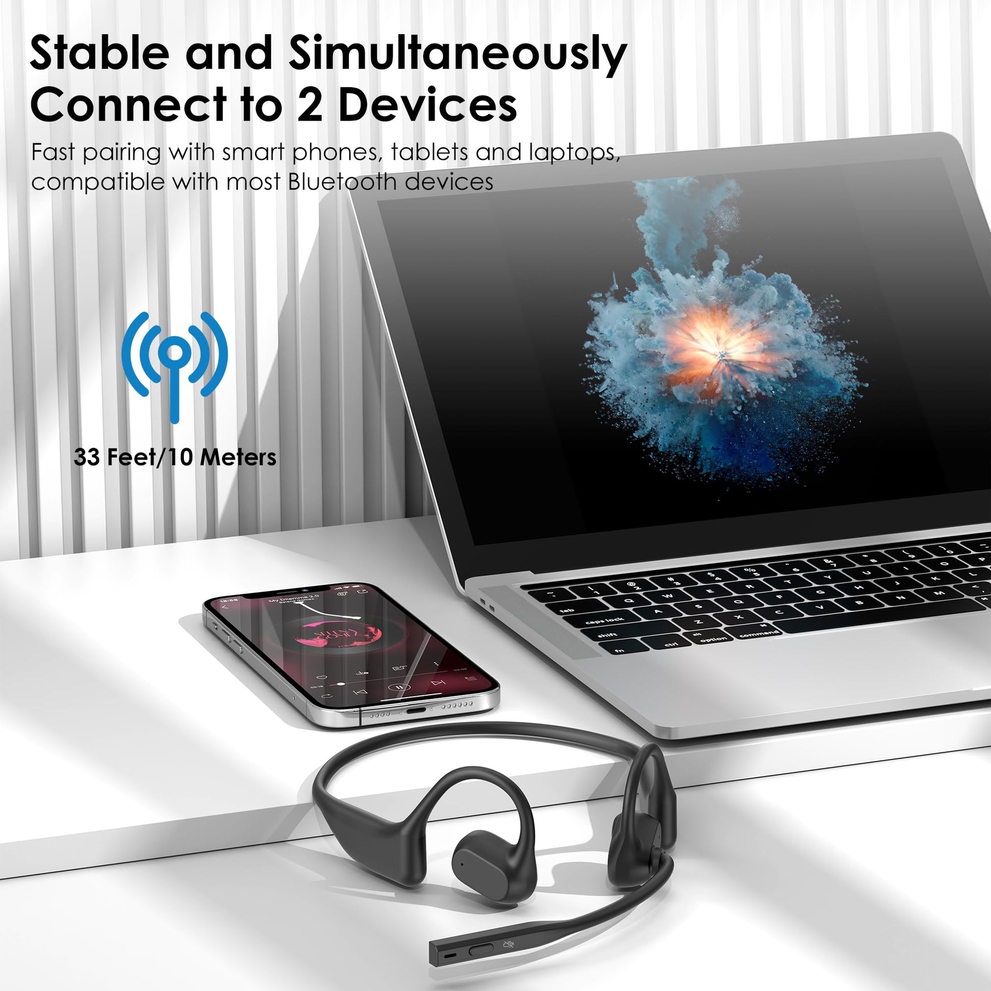 Gixxted Open Ear Headphones with Mic, Bluetooth Headset with Microphone, Dual Connect Bluetooth 5.3 with AI Noise Cancelling Mic & Mute Function, Wireless Headset for Work, Sports, Drive