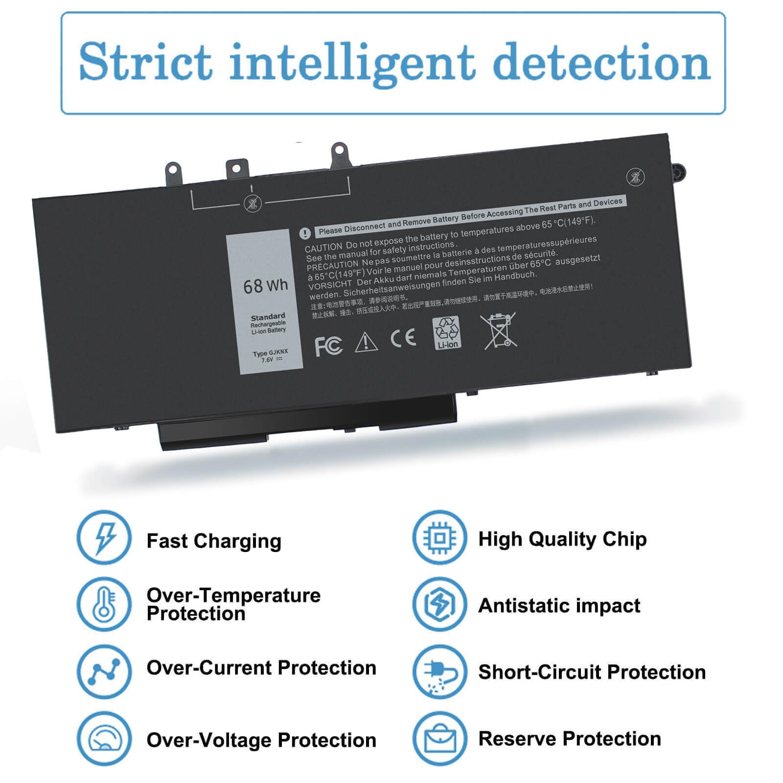 GJKNX 7.6V 68WH Battery Replacement for Dell Latitude 5480 5580 5490 5491 5580 5590 5591 5280 5288 5488 5491 5495 E5480 E5580 E5490 E5590 Precision 3520 3530 Series GD1JP 0GD1JP DY9NT 5YHR4 451-BBZG