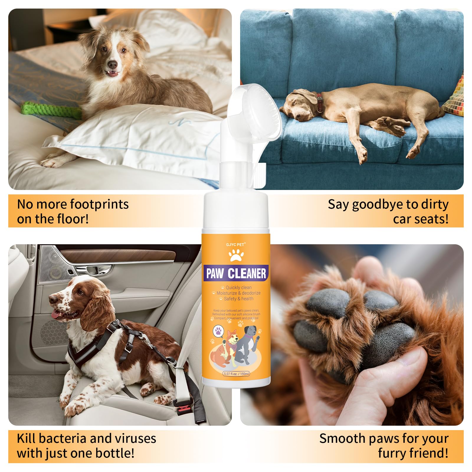 GJYC PET Paw Cleaner for Dogs and Cats,Magic Foam - Clean Paws Rinse Free Foaming Cleanser-Dry Shampoo, Foot Cleaner Brush - with Rose Extract, Odor Control Wash - Good for Puppy