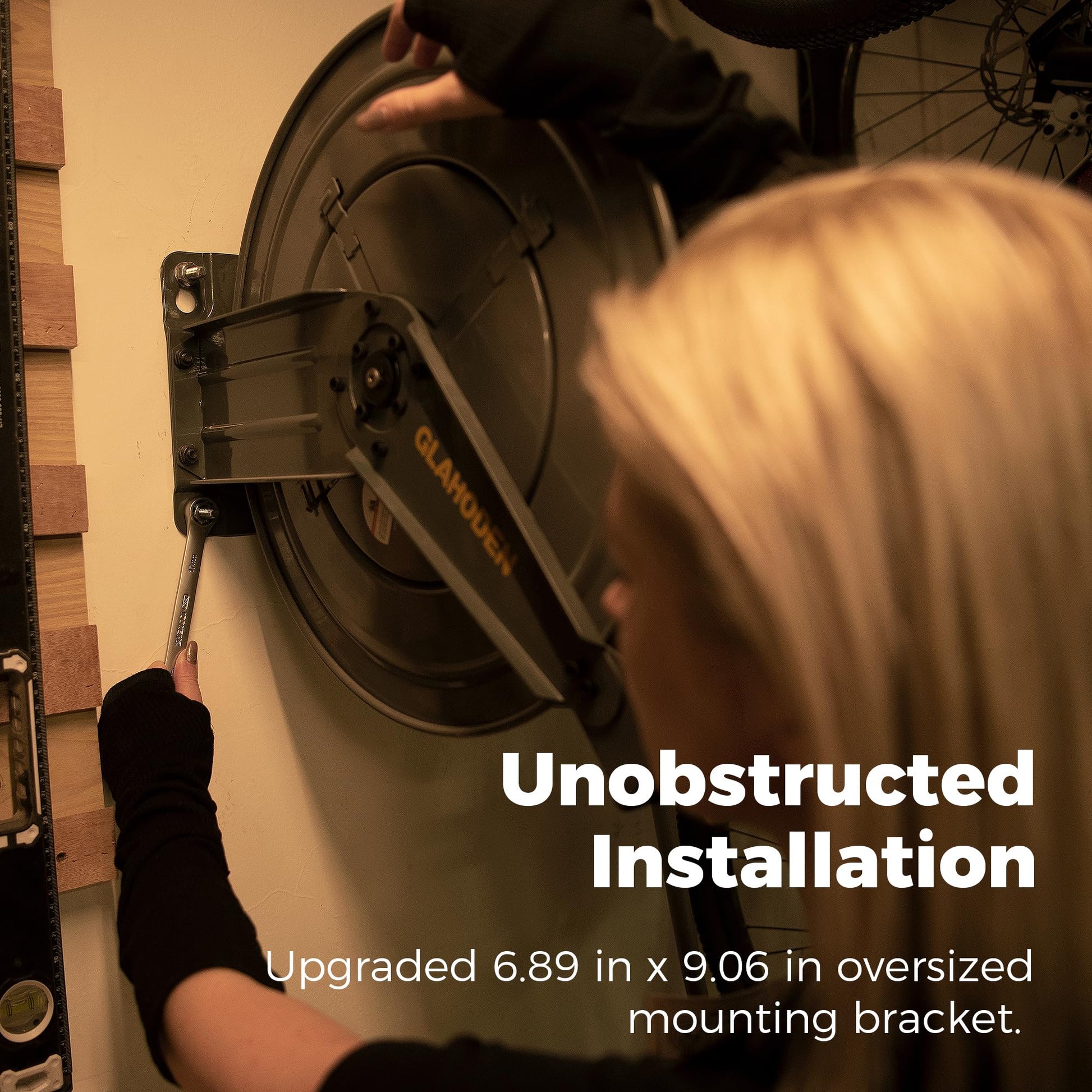 • Larger Mounting Bracket: GLAHODEN retractable air hose reel 50 ft has increased the bracket size to 6.89 in × 9.06 in, you can easily access the back of the retractable air reel to tighten the bolts. The upgraded high-strength expansion bolts make the installation more solid and reliable.