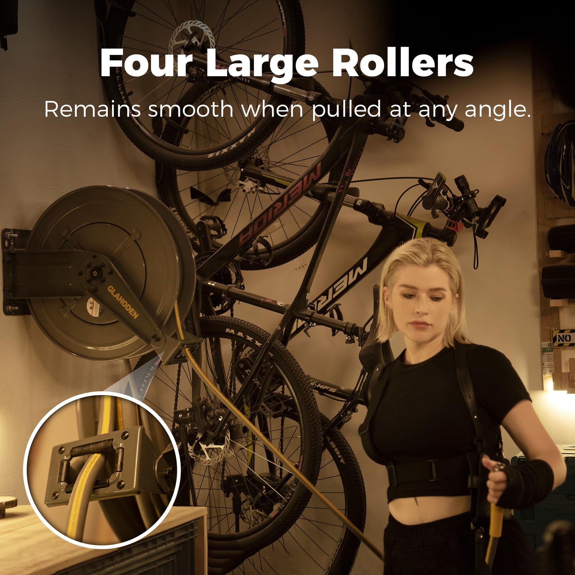 • Heavy Duty Double Arm All-steel Construction: GLAHODEN air compressor hose reel retractable is compact and virtually indestructible by using 0.04 in thickened steel and 0.15 in thick support arm. The high quality powder coated surface is extremely durable and always looks like new (weighs 36.73 lbs, please install on a sturdy surface).