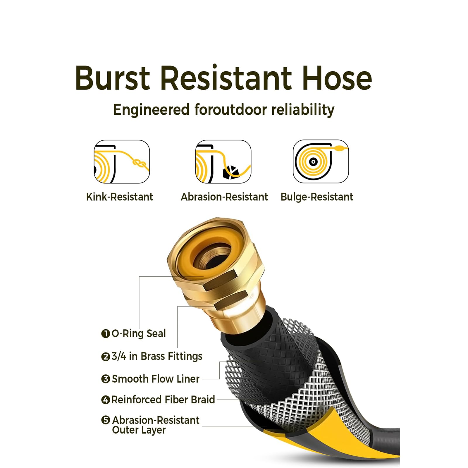 • Burst Resistant Hose: The hose on this hose reel for outside features 3-layer PVC + reinforced fiber braid, tested to 348 PSI burst pressure (3X the 120 PSI working pressure). Unlike inflated claims, this safety margin ensures no leaks or bursts for 2+ years of stable use
